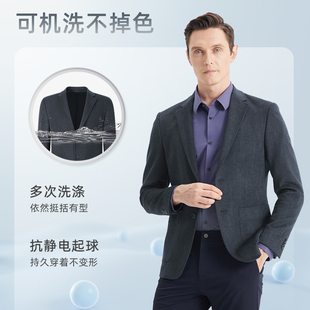 西装 花纹修身 外套男 海澜之家绒感弹力休闲西服男25秋冬新时尚 HLA