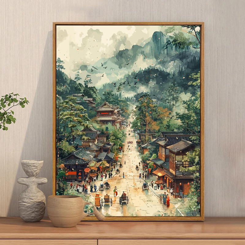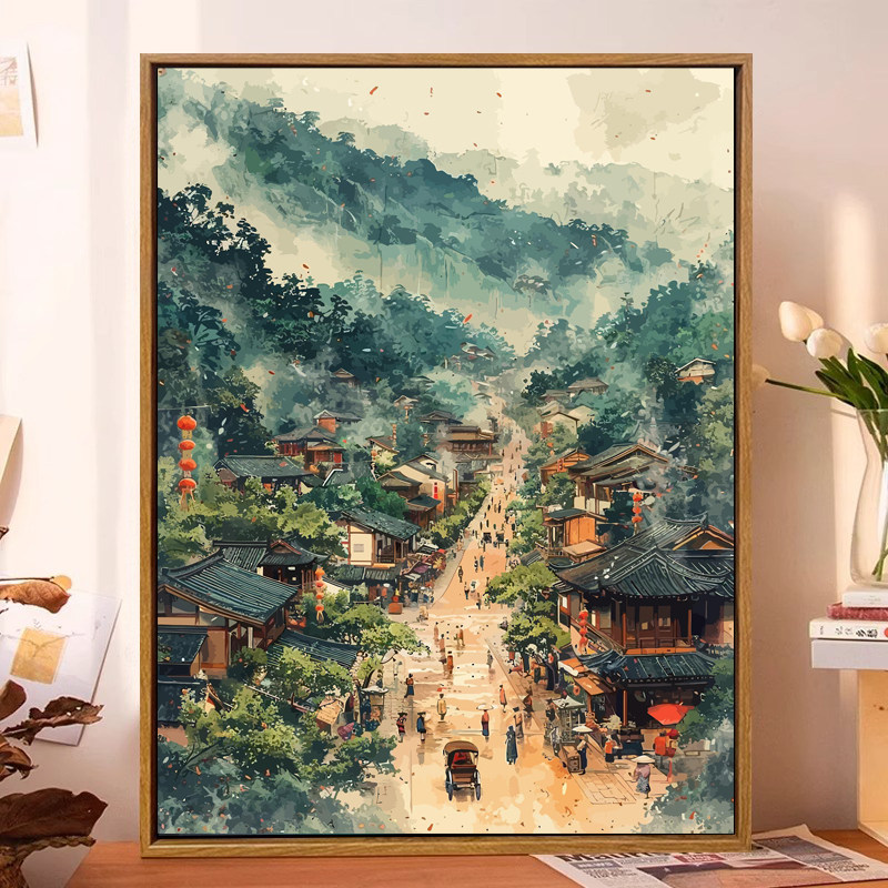 中国风清明上河图数字油画diy填充涂色手工绘治愈系客厅装 饰挂画