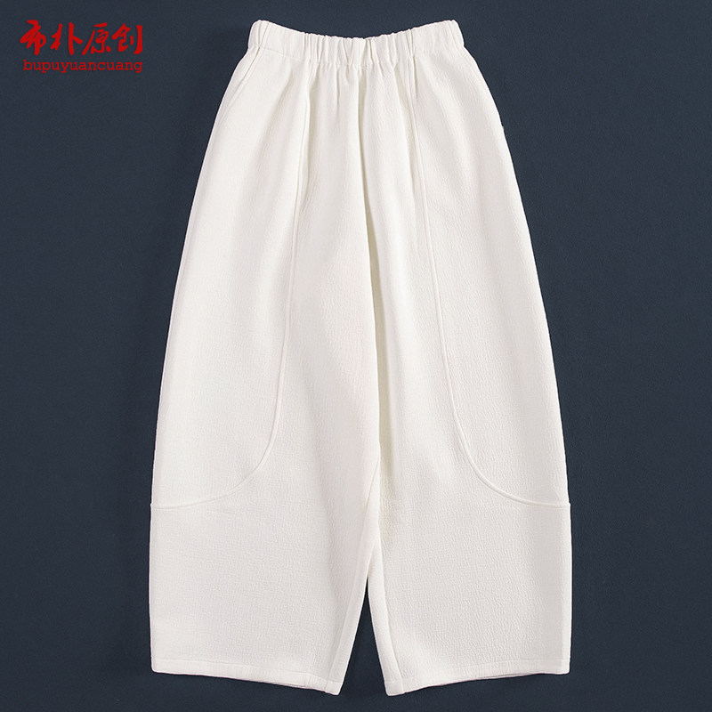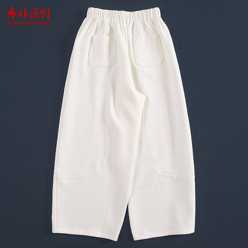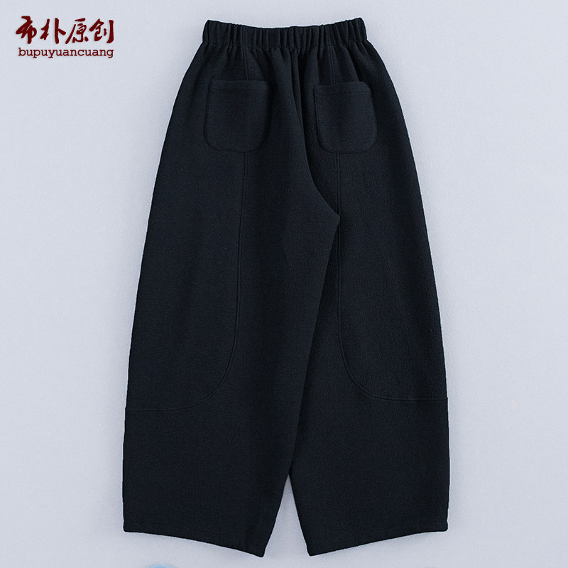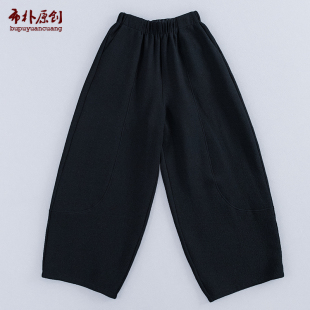 布朴家作25秋冬柔软空气层棉混纺肌理感松紧腰分割阔腿休闲九分裤