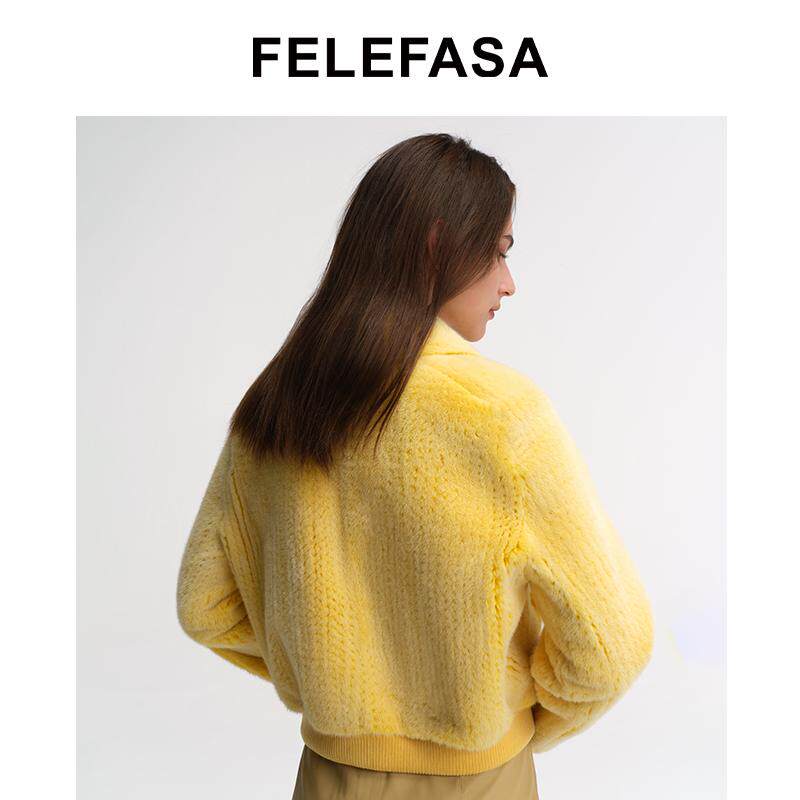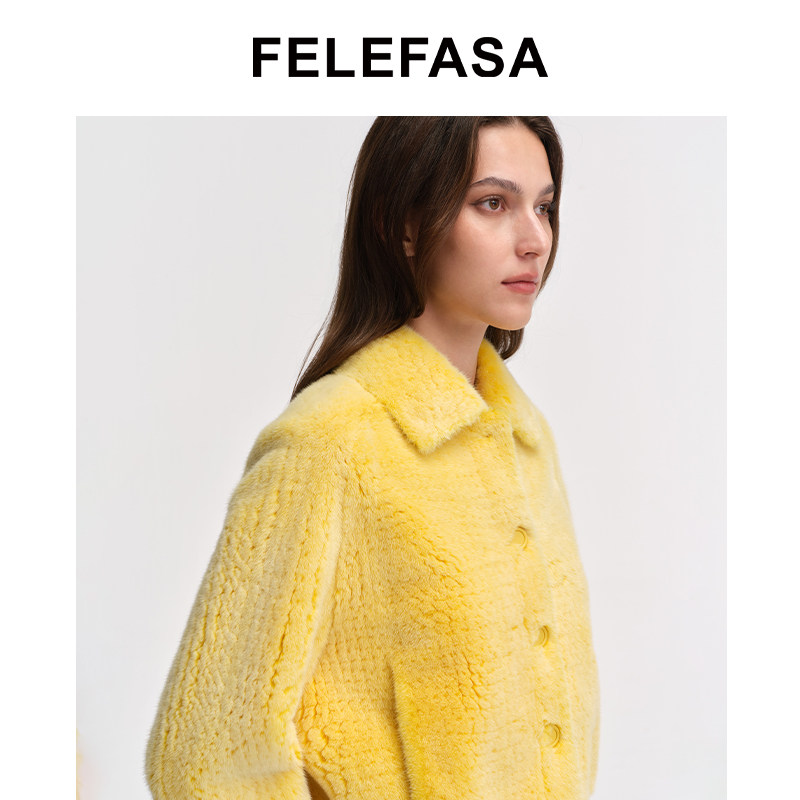 FELEFASA斐梵萨女装 束腰皮草夹克外套 哥本哈根水貂短款