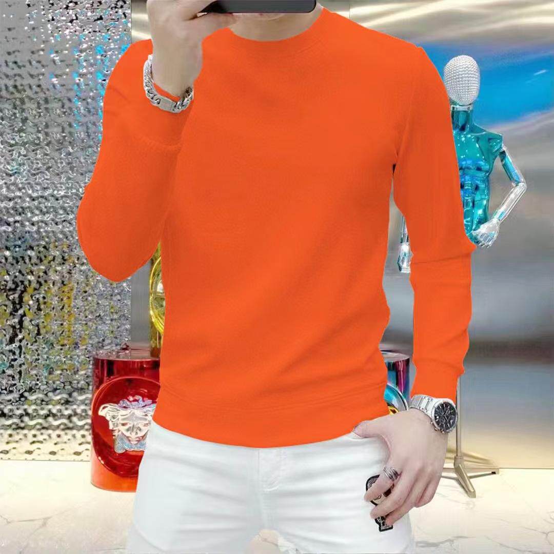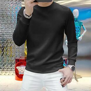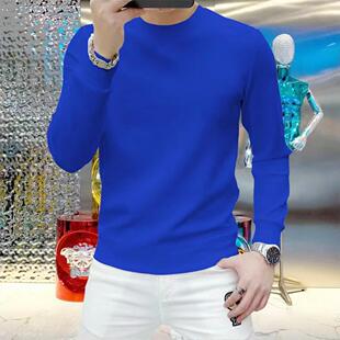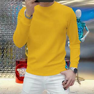 大码 纯色绿色长袖 上衣 圆领套头亮色卫衣时尚 高端重磅双丝光棉男士