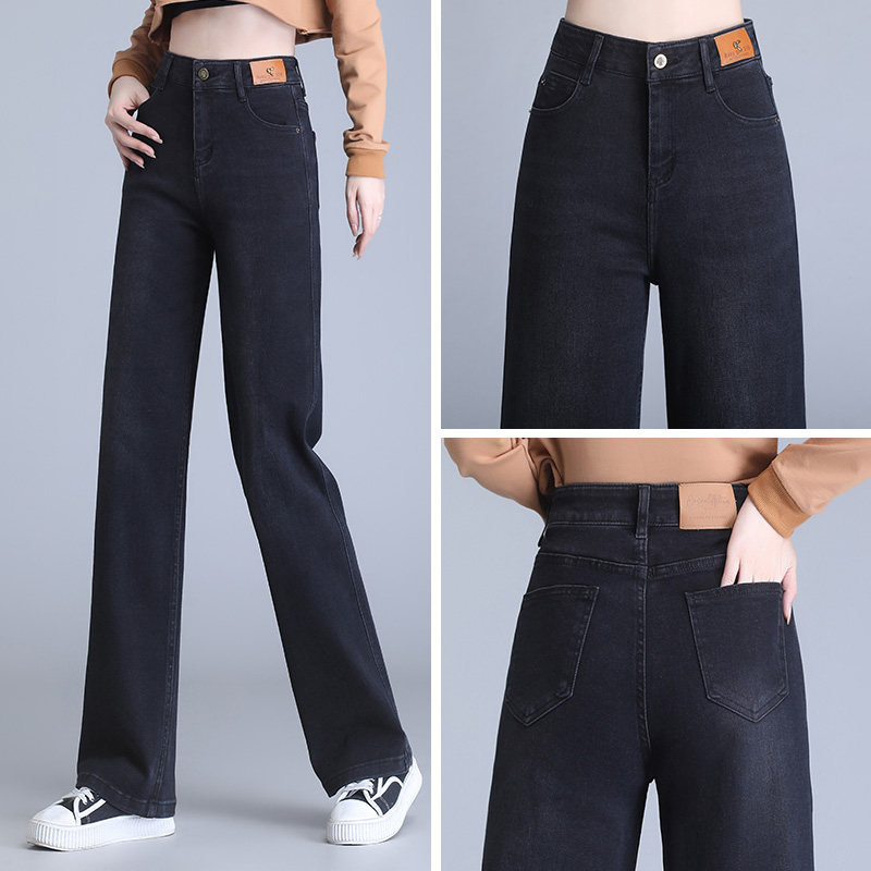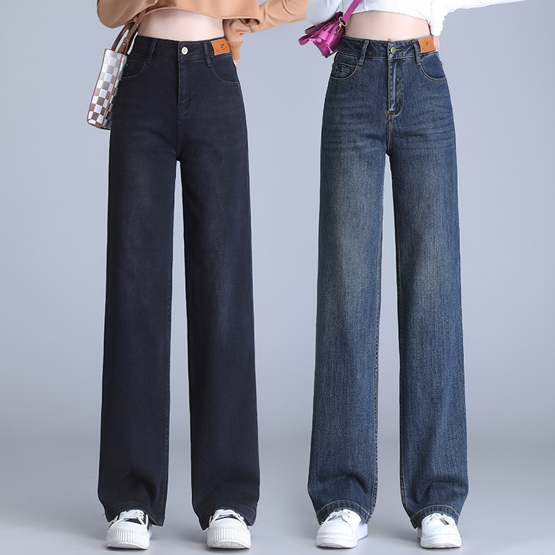 2025秋冬装 阔腿长裤 新款 高腰加绒窄版 子 品牌百搭牛仔裤 逸阳女裤