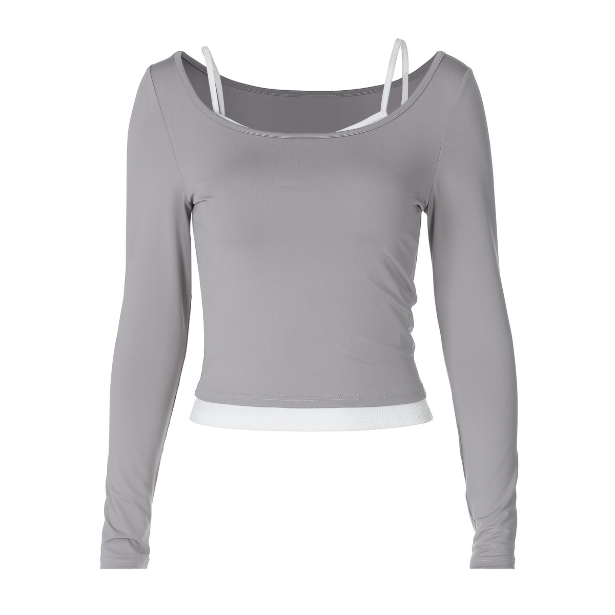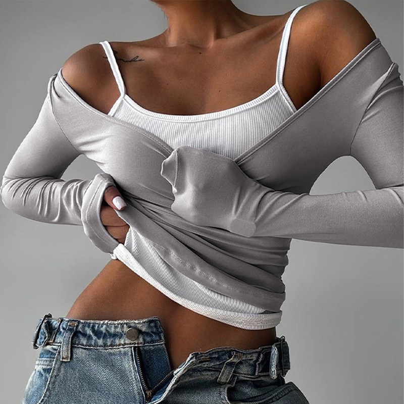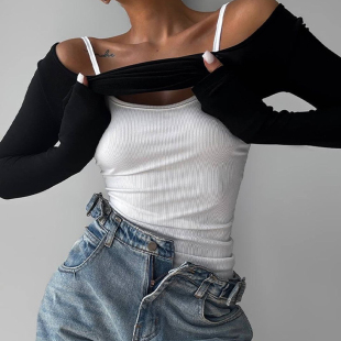 百搭时尚 长袖 套装 圆领修身 上衣内搭吊带背心两件套 女 shemoda秋季
