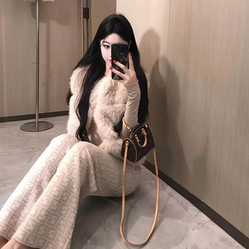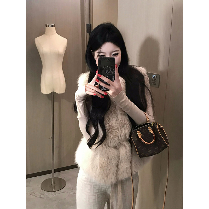 秋冬贵气高级感拼接毛毛马甲上衣女纯欲氛围感加厚环保毛皮草外套