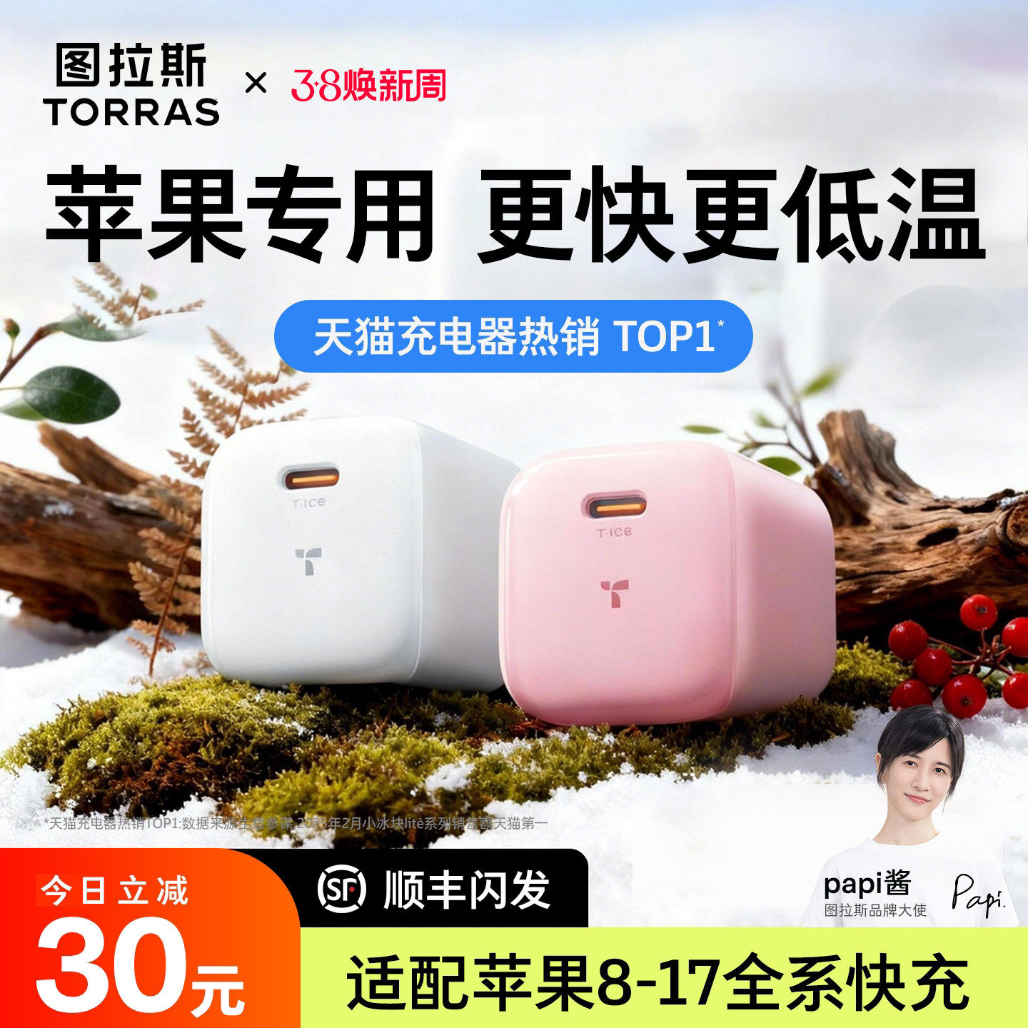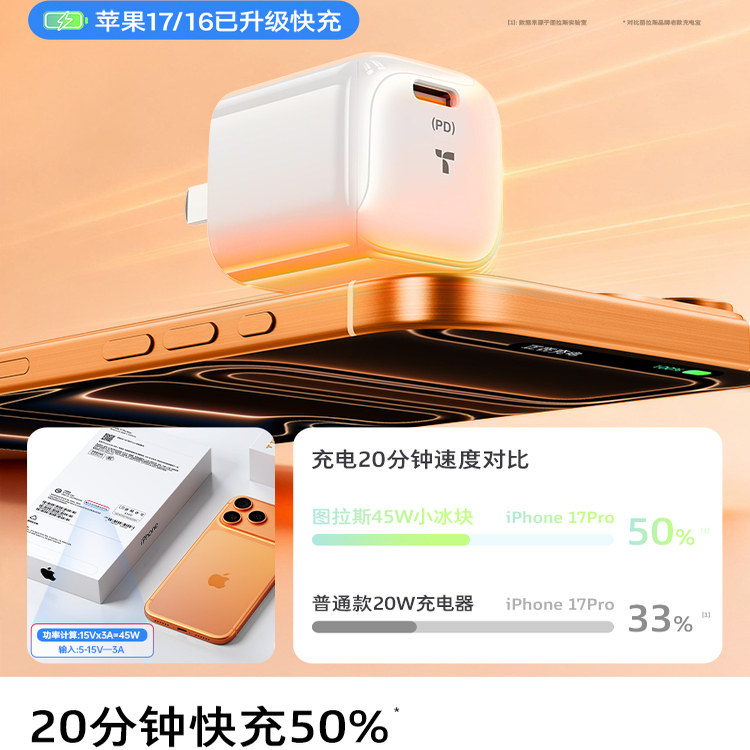 40W手表45w 图拉斯小冰块Lite适用苹果17ProMax充电器iPhone16Pro快充头30usb套TypecPD双C正品 papi酱同款