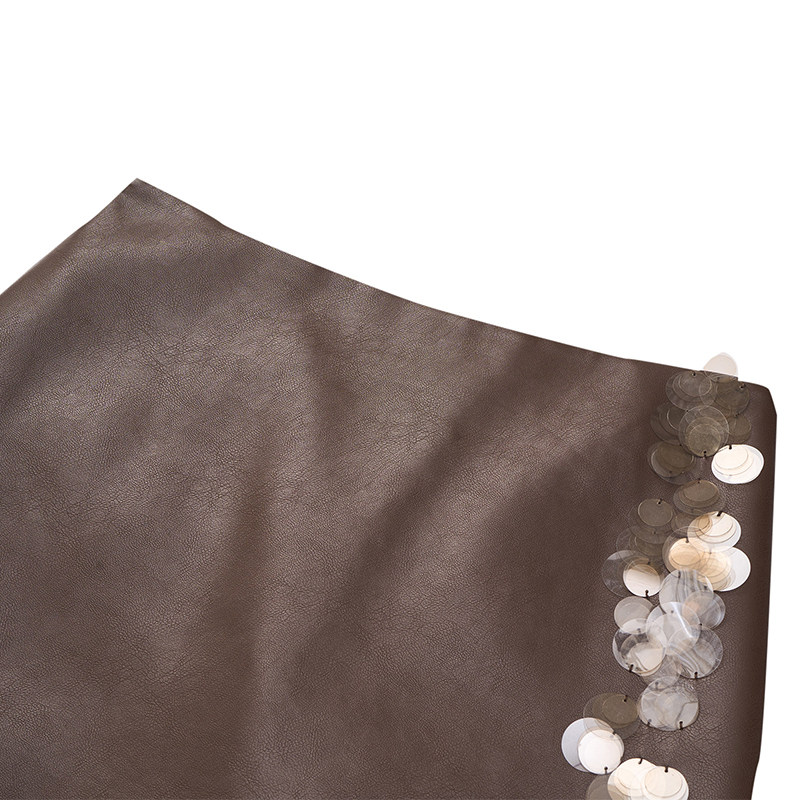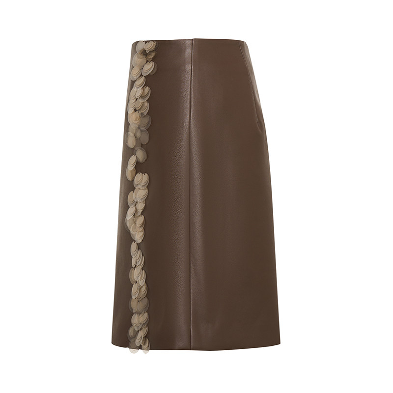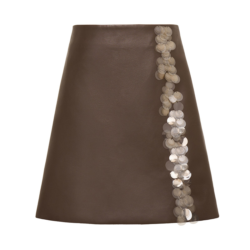 半身a字裙皮裙 女士重工立体珠片皮质半身裙 Petit Bari