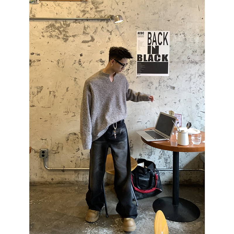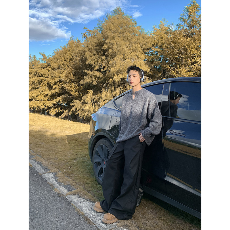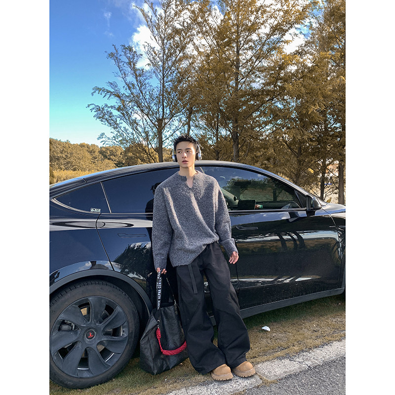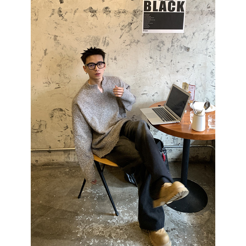 男休闲套头外套秋季 复古保暖V领纯色慵懒针织衫 显瘦毛衣 冬季 PLTH