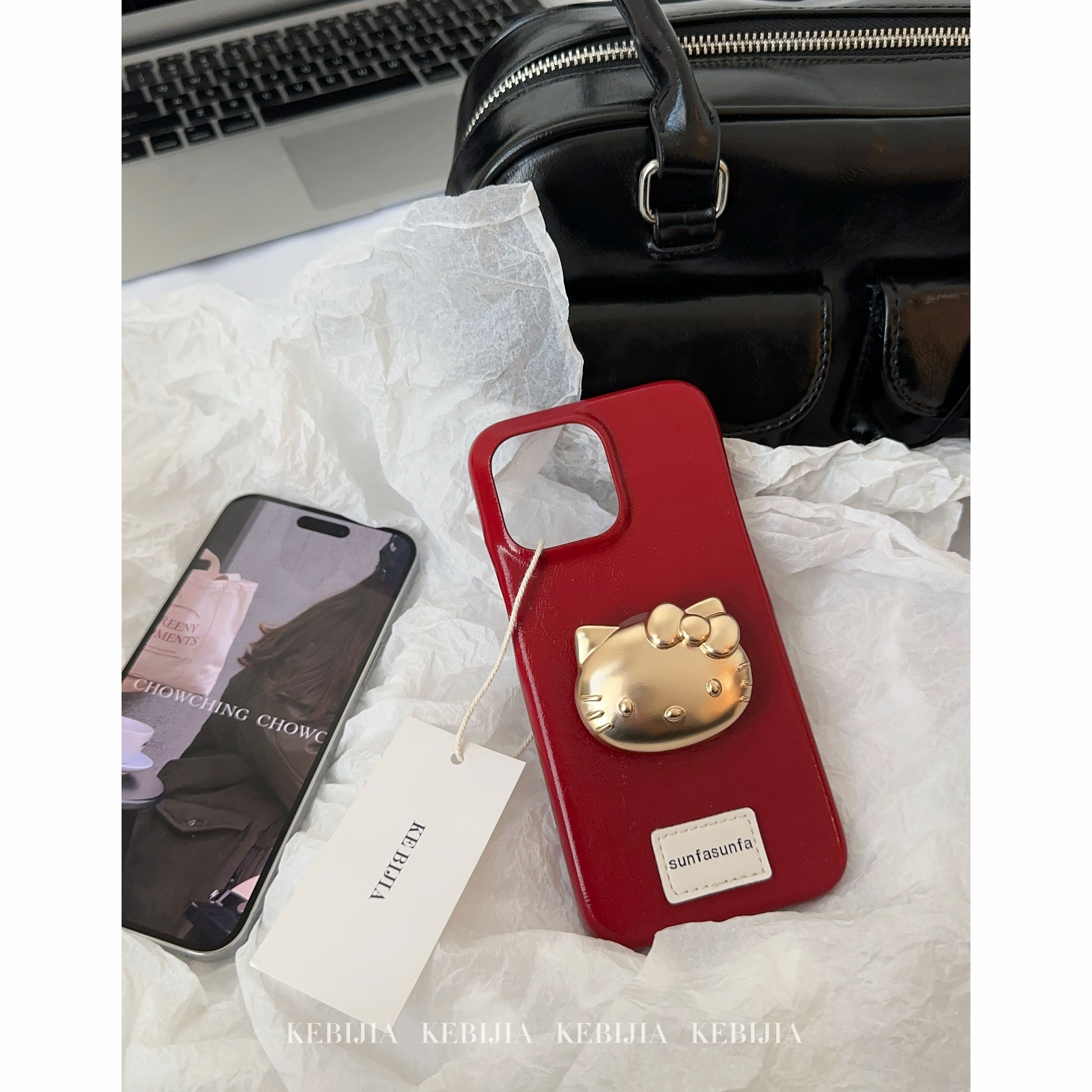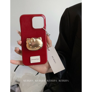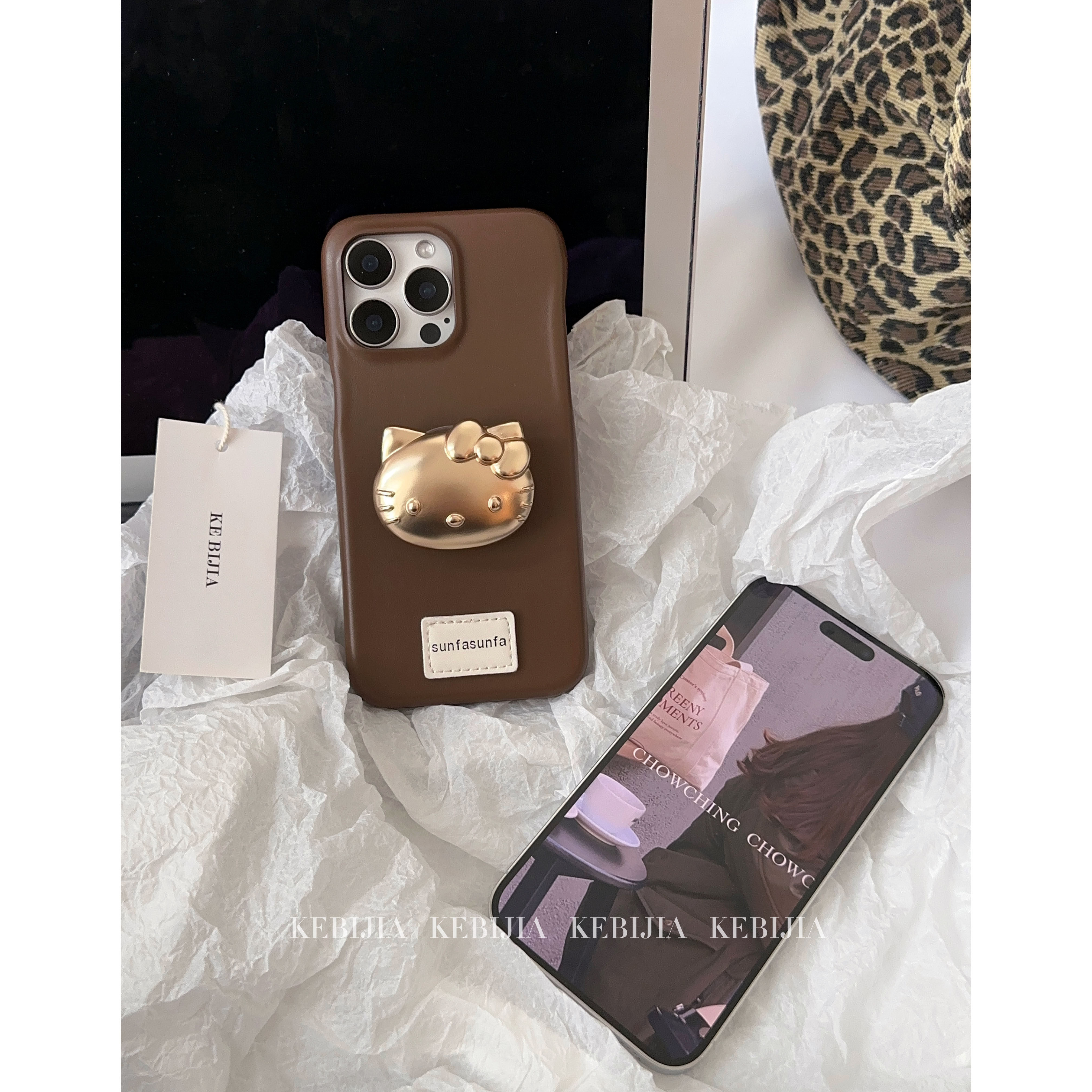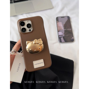 ins秋冬皮质壳电镀kt猫支架适用于苹果17promax16 14手机壳