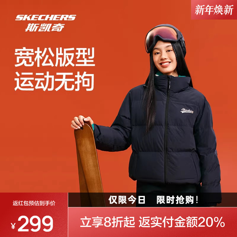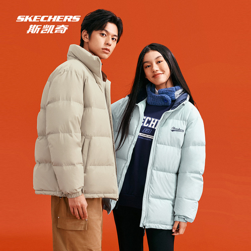 立领防泼水中性运动外套 梭织短款 斯凯奇面包羽绒服男女同款 冬季