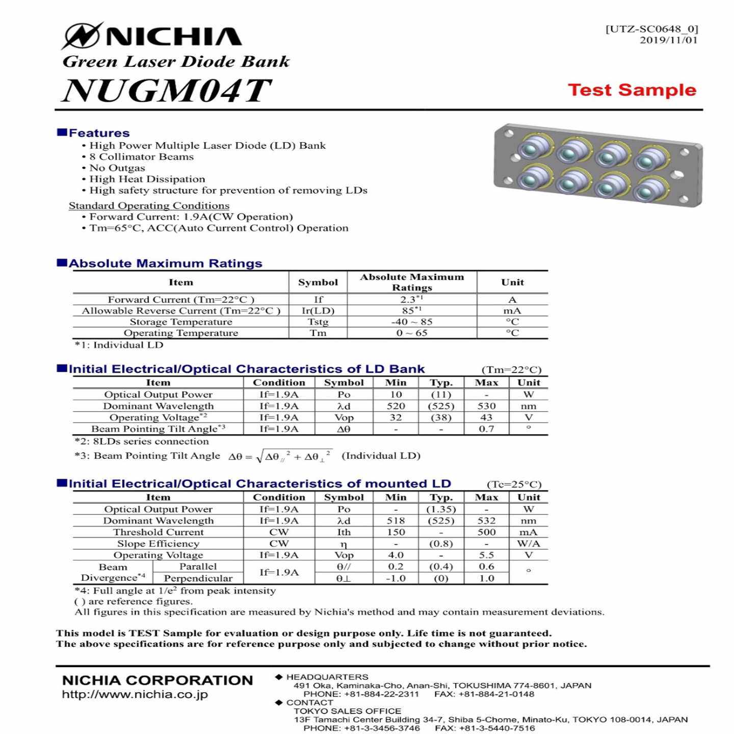 日亚NUGM04激光模块525nm1.35w大功率绿光激光器询价