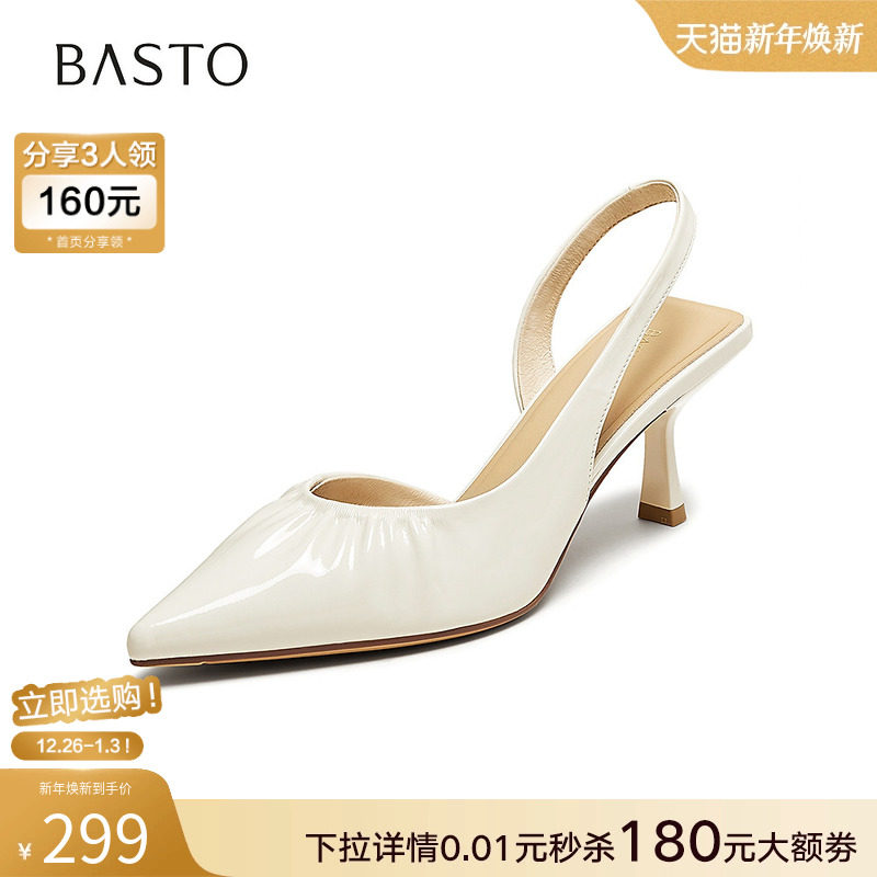 潮流尖头细高跟女凉鞋 后空凉鞋 F5231BH5 商场同款 百思图2025夏新款