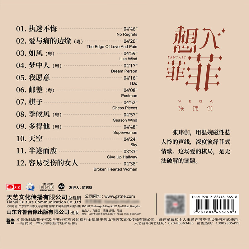 CD女声发烧cd碟高品质音乐车载hifi 想入菲菲 天艺唱片 张玮伽