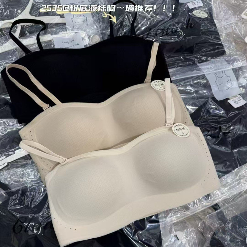 隐形粉底液无肩带薄款 美背内衣防走光抹胸无痕防滑小胸聚拢文胸罩