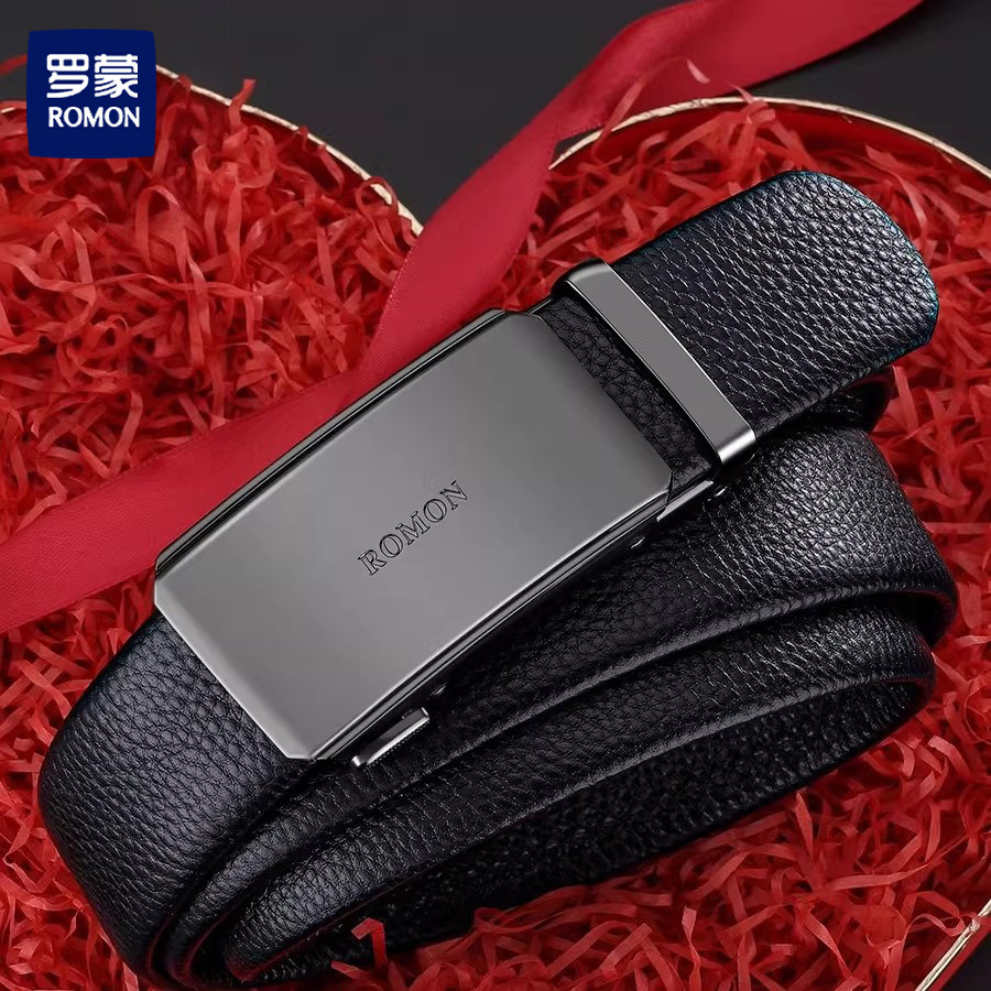 带正品 罗蒙皮带男款 爸爸腰带自动扣牛皮纯商务裤 男士 真皮2025新款