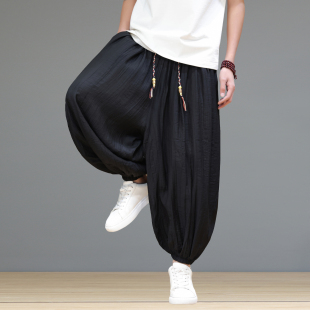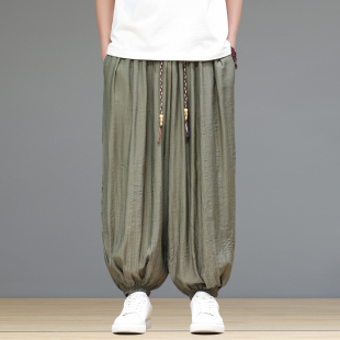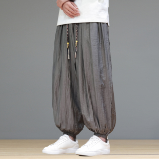 冰丝裤 中国风宽松阔腿裤 子男灯笼裤 透气休闲九分裤 薄款 2025夏季
