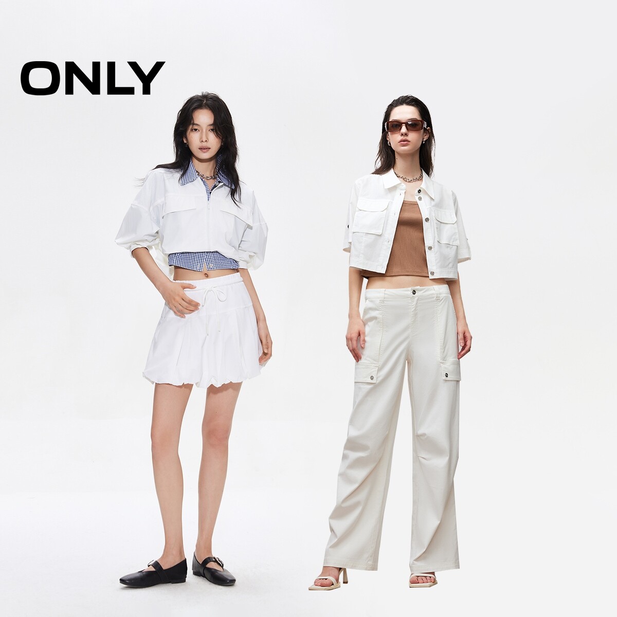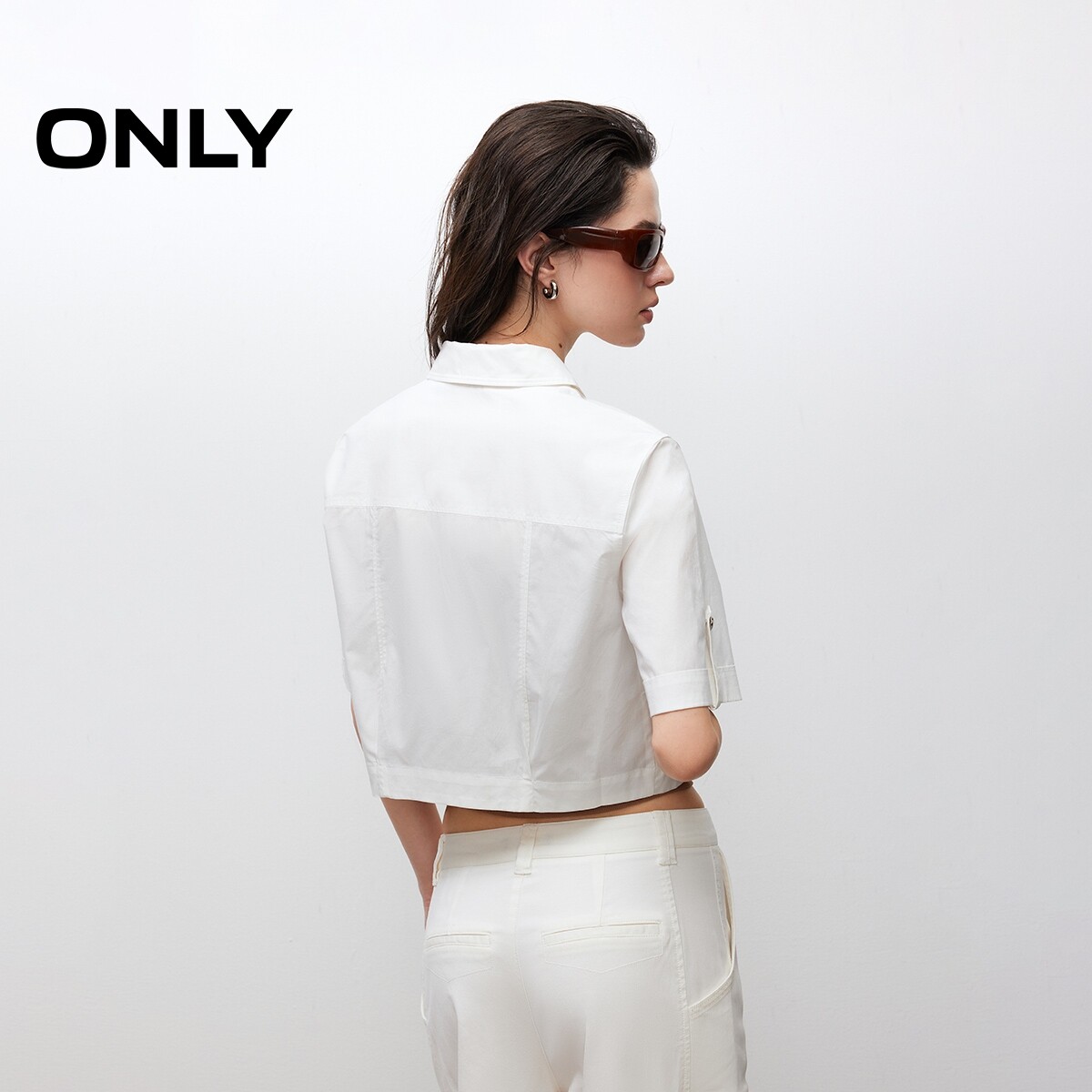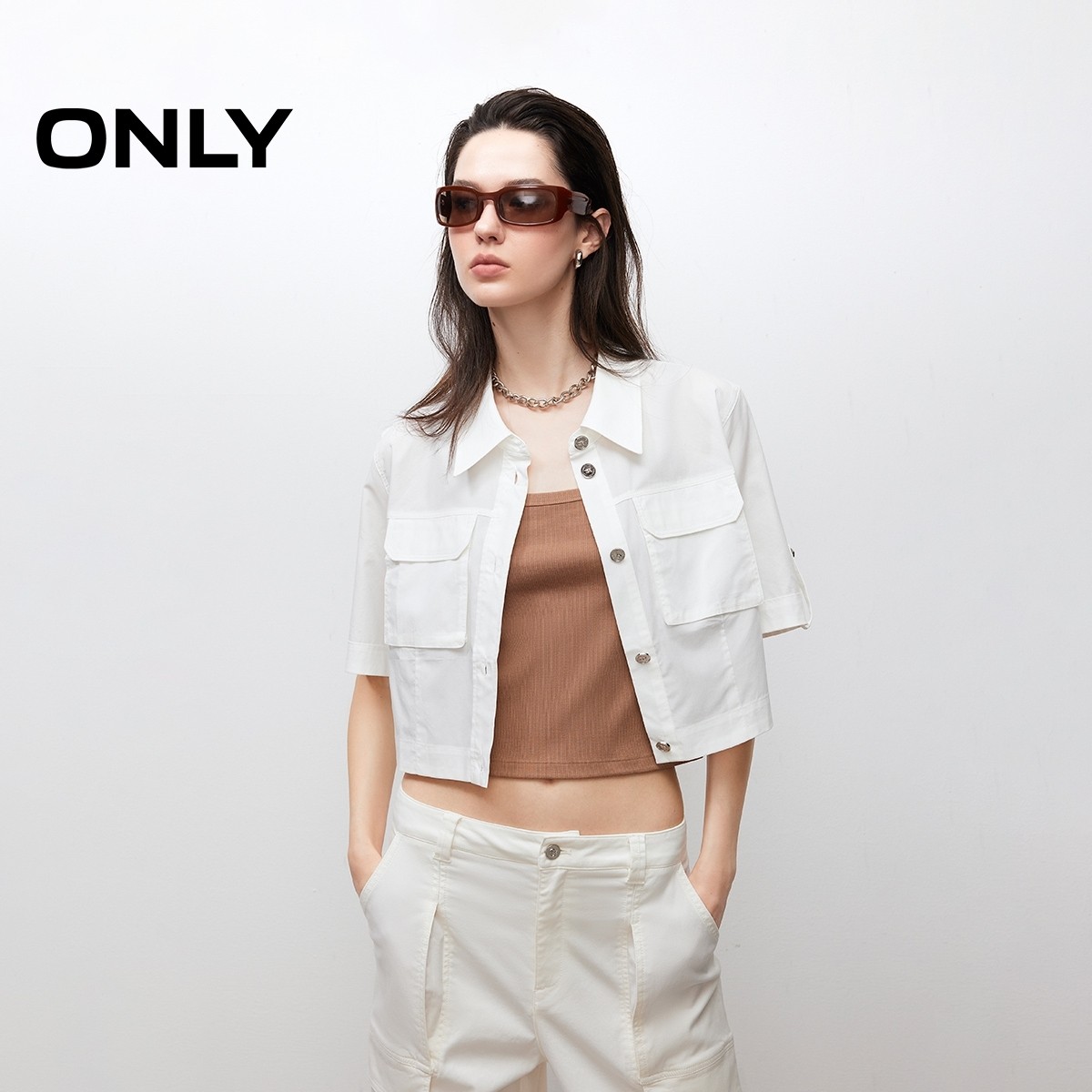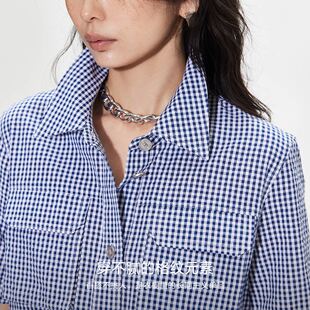 ONLY奥莱 衬衫 春夏款 箱型直筒实用口袋翻领短袖 女 清新格纹短款