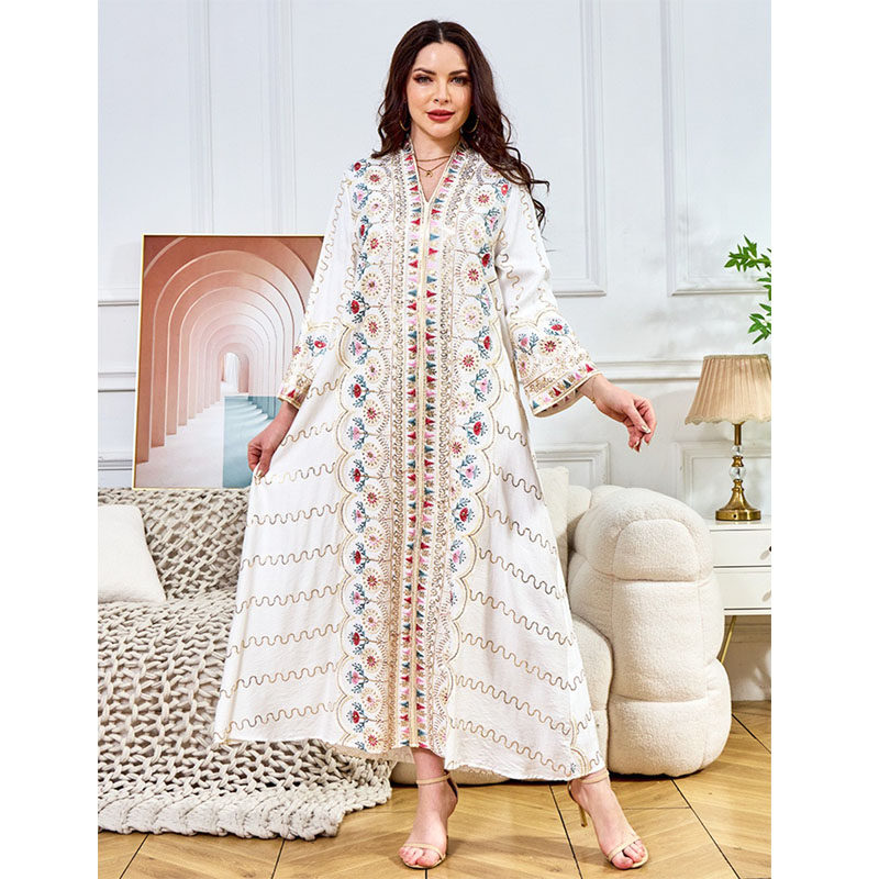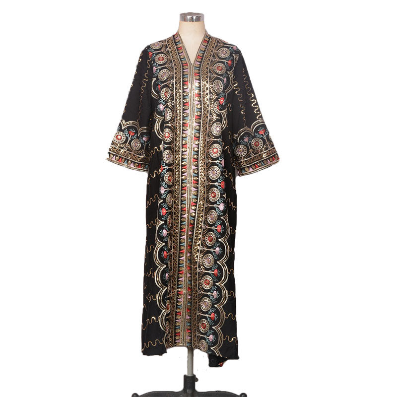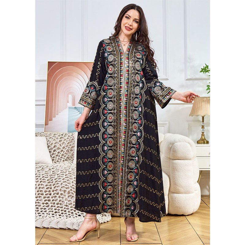 中东长袍女长裙2025珠片新款 dress V领宽松晚礼服迪拜连衣裙Long