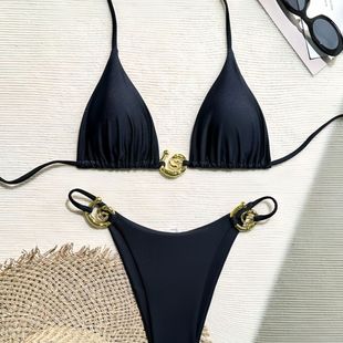 AYSTUDIO2025新款 比基尼性感纯欲风黑白条纹度假泡温泉分体泳衣女
