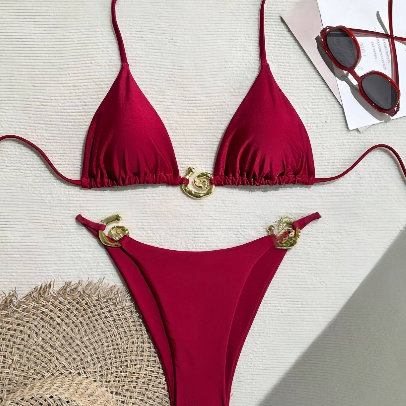 绝美泳衣女比基尼三件套2025超性感辣妹纯欲小胸聚拢显瘦海边度假