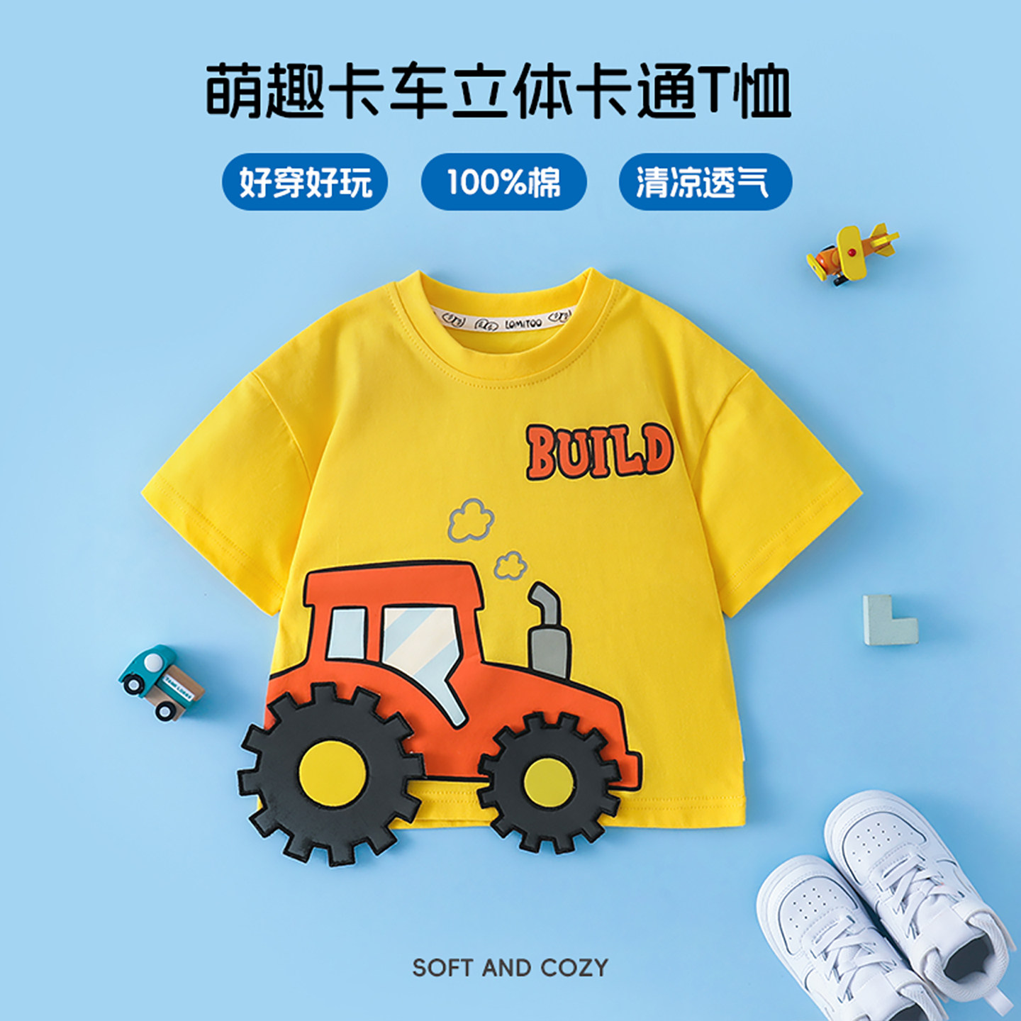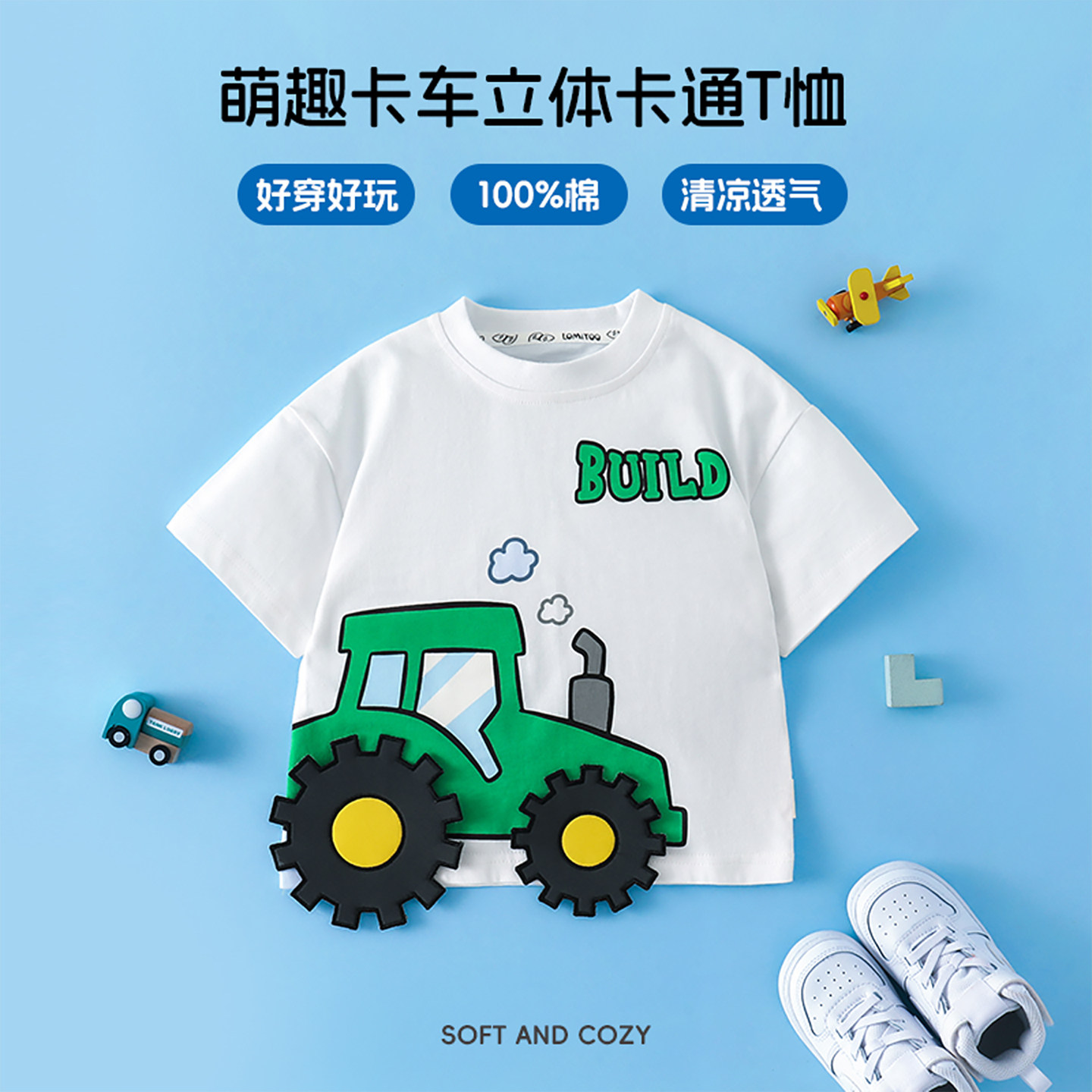 儿童可爱汽车半袖 男童短袖 宝宝衣服夏季 新款 男孩上衣纯棉 t恤夏装