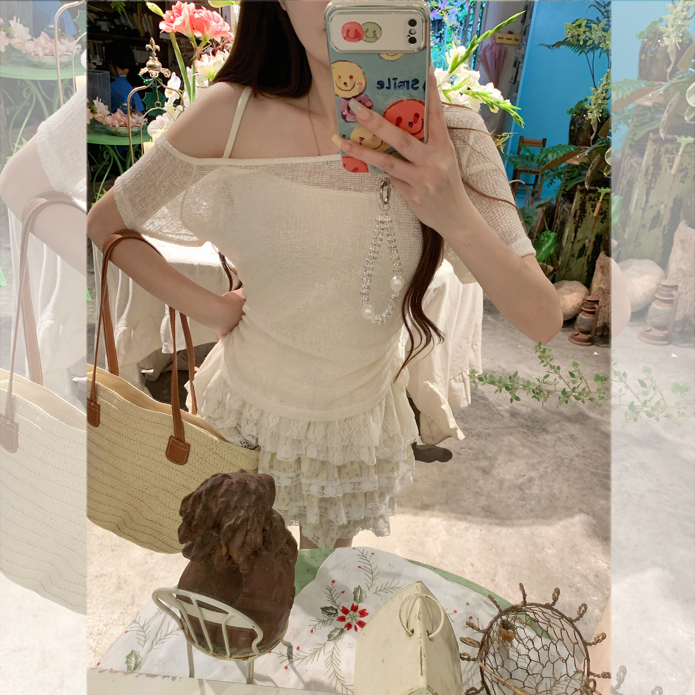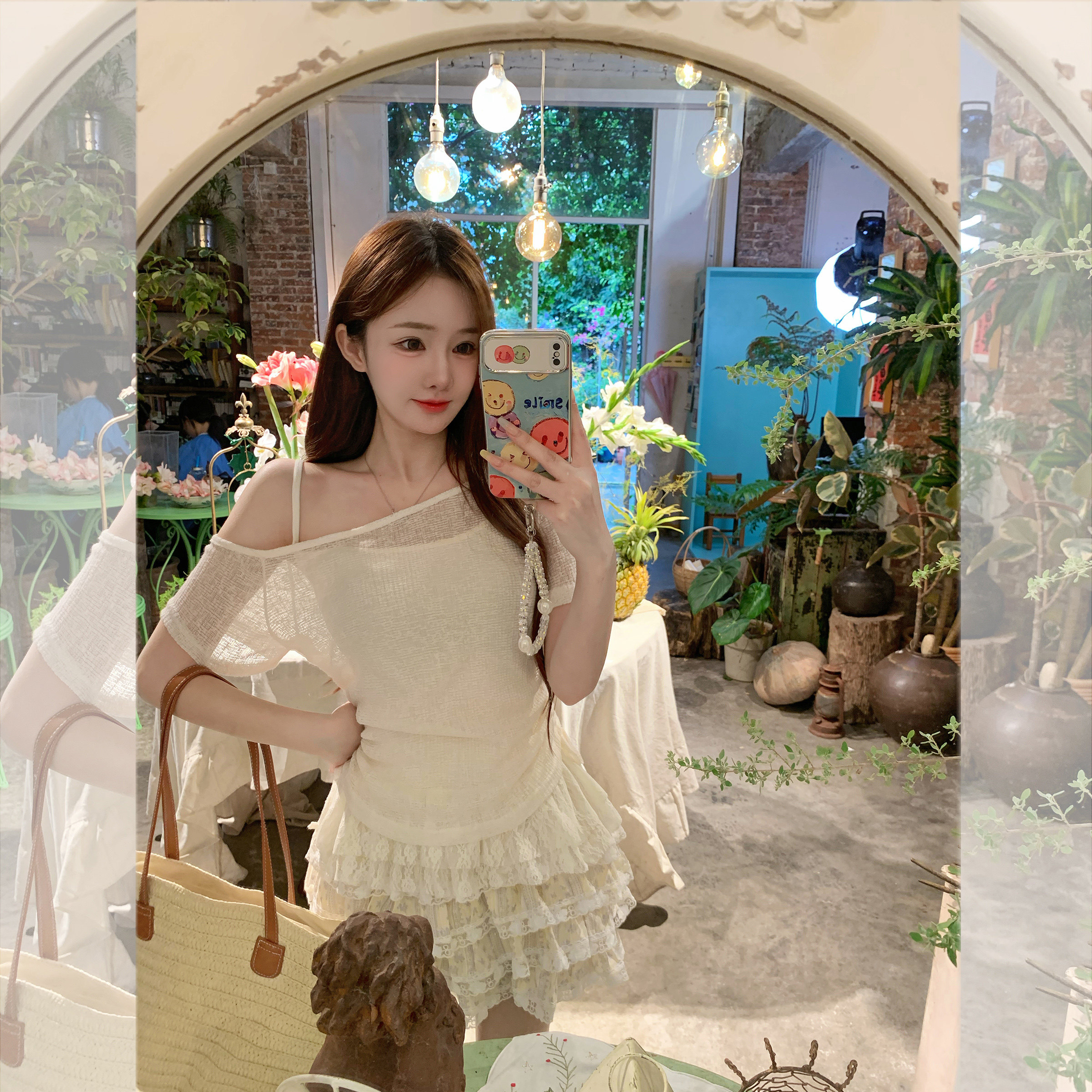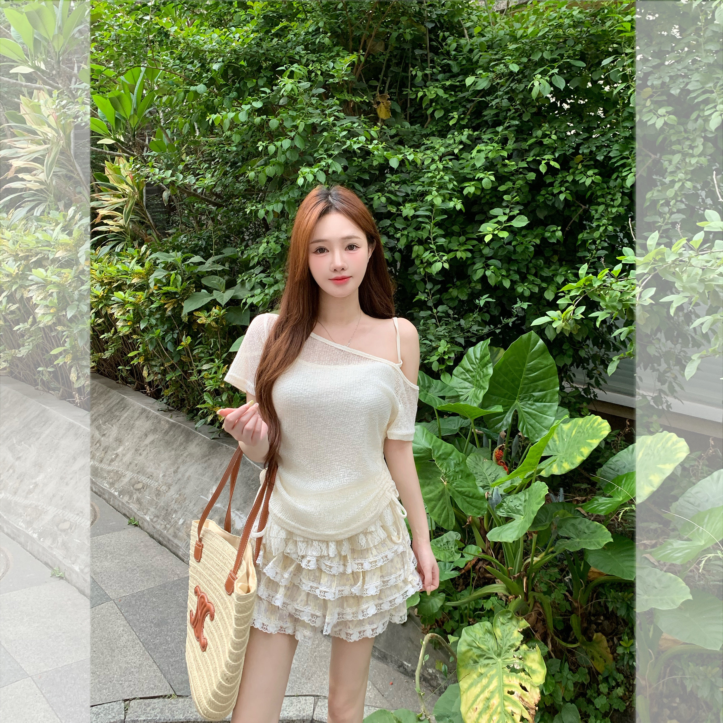 现货闪发两件套吊带短袖 斜肩夏日独特漂亮上衣显瘦 女t恤2026新款
