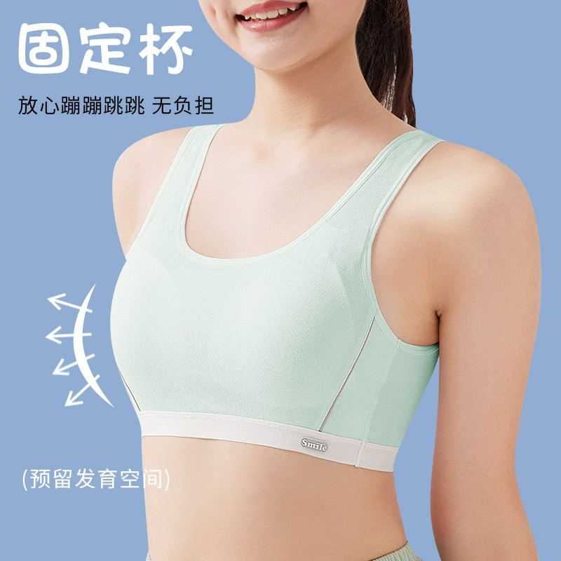 少女发育期背心内衣中学生纯棉文胸运动女初高固定杯跑步防震女童