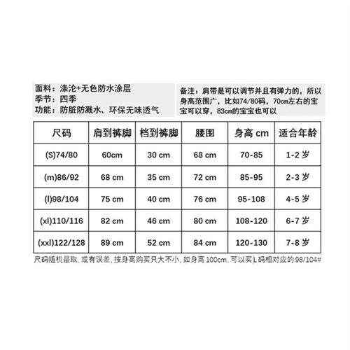 春冲锋裤 幼儿园小孩防脏沙滩裤 男女童宝宝连体雨衣雨鞋 儿童防水裤