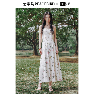 张风野联名 太平鸟碎花朵连衣裙夏新挂脖吊带长裙度假 莫奈花园