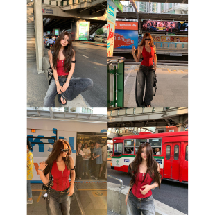 绑带可调节上衣小A半裙套装 Xinlei jennie同款 勃艮第情书 Lin