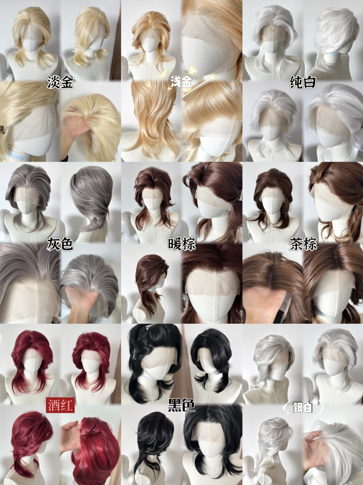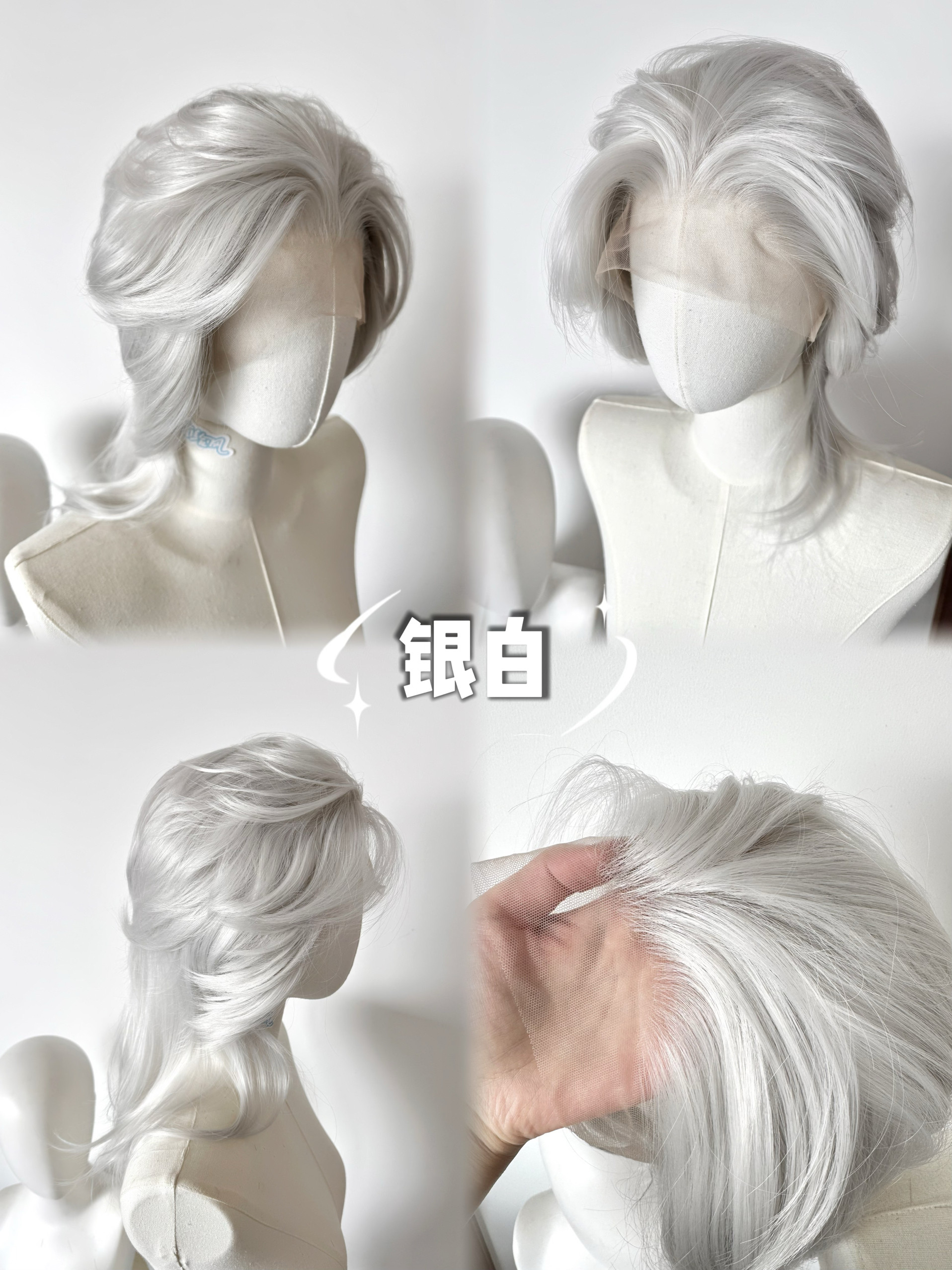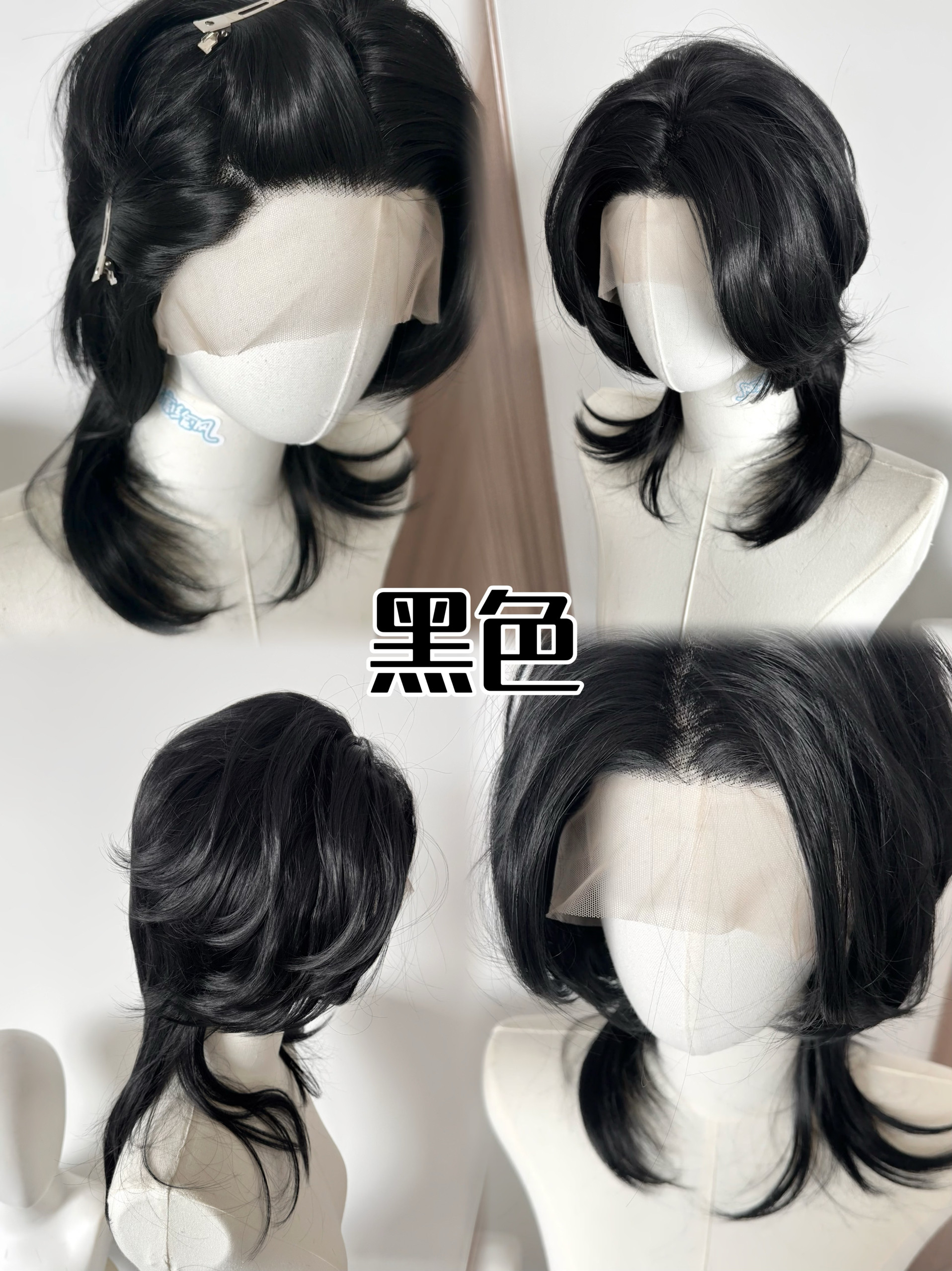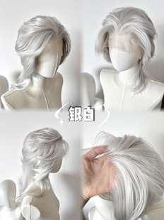 手钩前额大蕾丝假发狼尾鲻鱼头黑瞎子cos罗夏毛胚 万用短狼尾