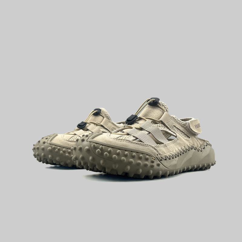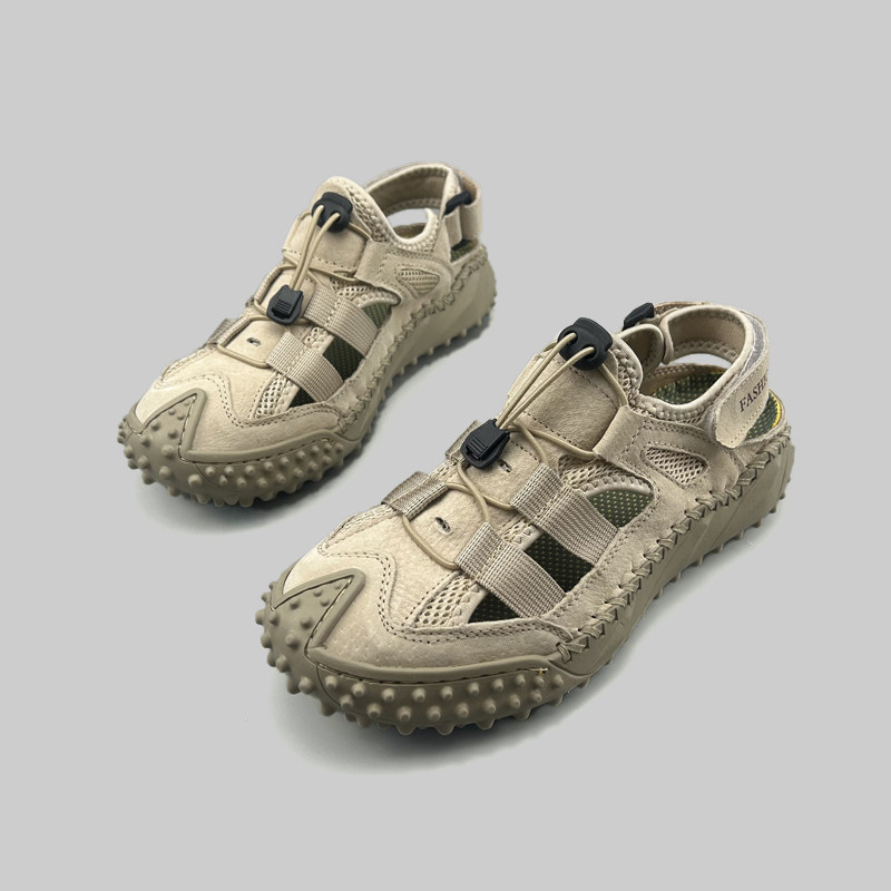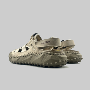外贸单 户外耐磨防滑沙滩鞋 夏季 手工缝线真皮魔术贴凉鞋 男士 欧美