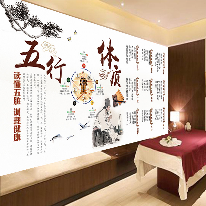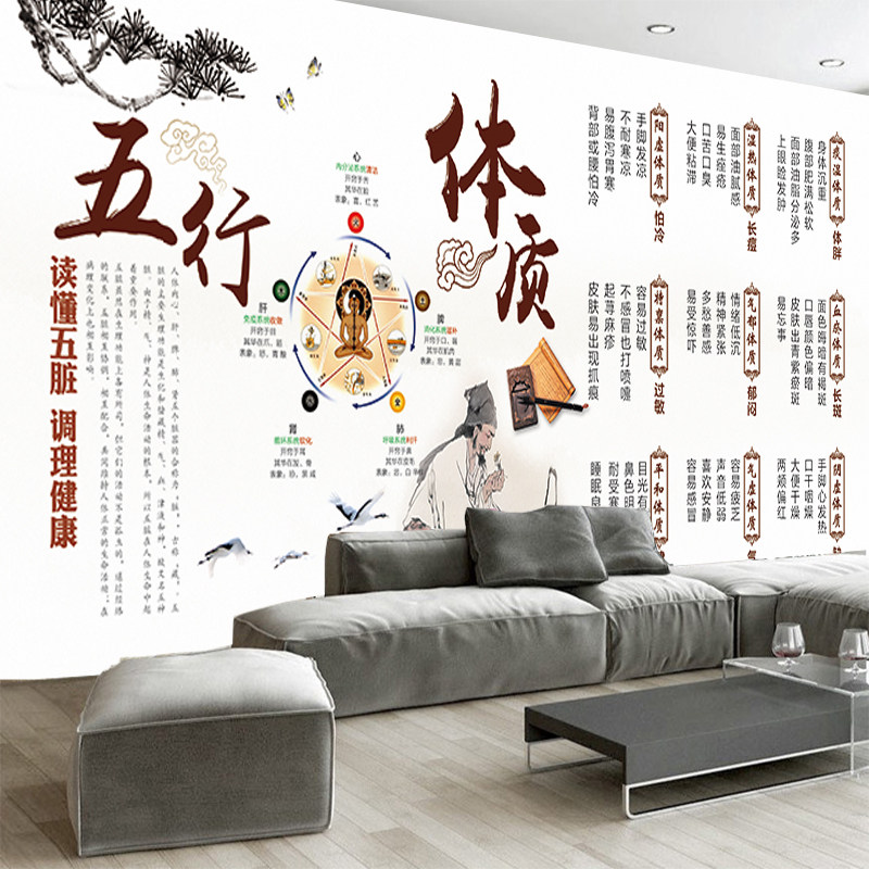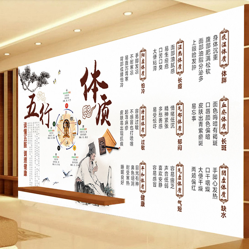 热销九种体质文化墙纸中医养生馆背景墙装 饰壁画五行体质宣传展板