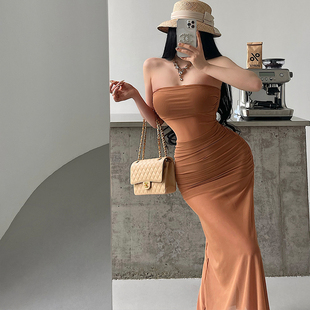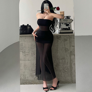 曲线主义吊带紧身包臀连衣裙子后妈气质2025夏流行新款 黑灰色 爆款