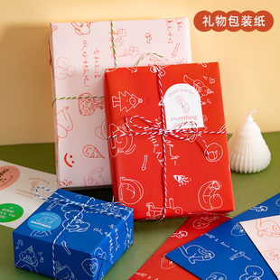 ISUKA一树家|礼物包装 饰彩纸 纸大尺寸加丝带圣诞情人节结婚可爱卡通生日礼盒礼品纸高级感花束包书皮纸DIY装