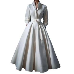 法式 气质V领出门晚礼服女 轻婚纱新娘速卖通复古简约森系立领长款