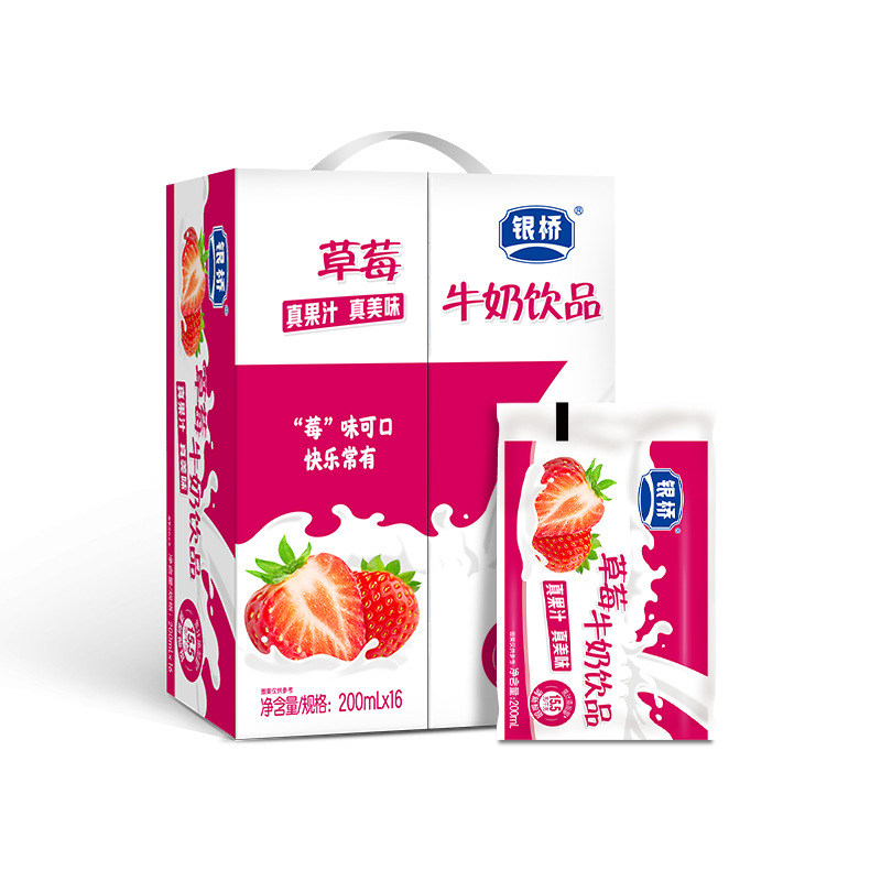 包邮 16袋整箱 200ml 银桥乳业百利包草莓酸牛奶饮料饮品早餐奶袋装