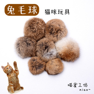 猫玩具真兔毛球猫咪丰容玩具小猫逗猫棒替换头静音大自嗨解闷丰荣
