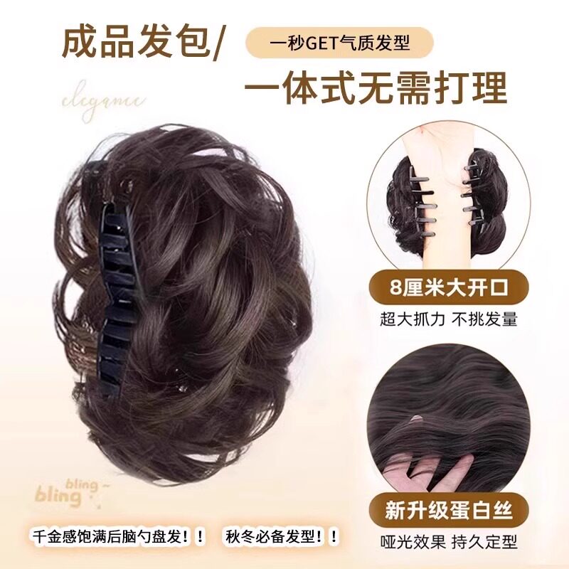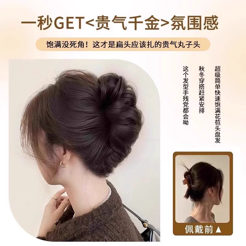 丸子头假发抓夹女高级感2025新款 高颅顶蓬松盘发神器鲨鱼夹显发量