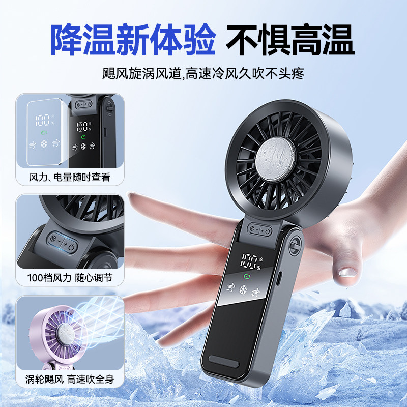 制冷小空调 手持风扇小迷你便携超长续航usb充电冰敷风扇折叠挂脖小型静音学生桌面宿舍户外降温神器2025新款