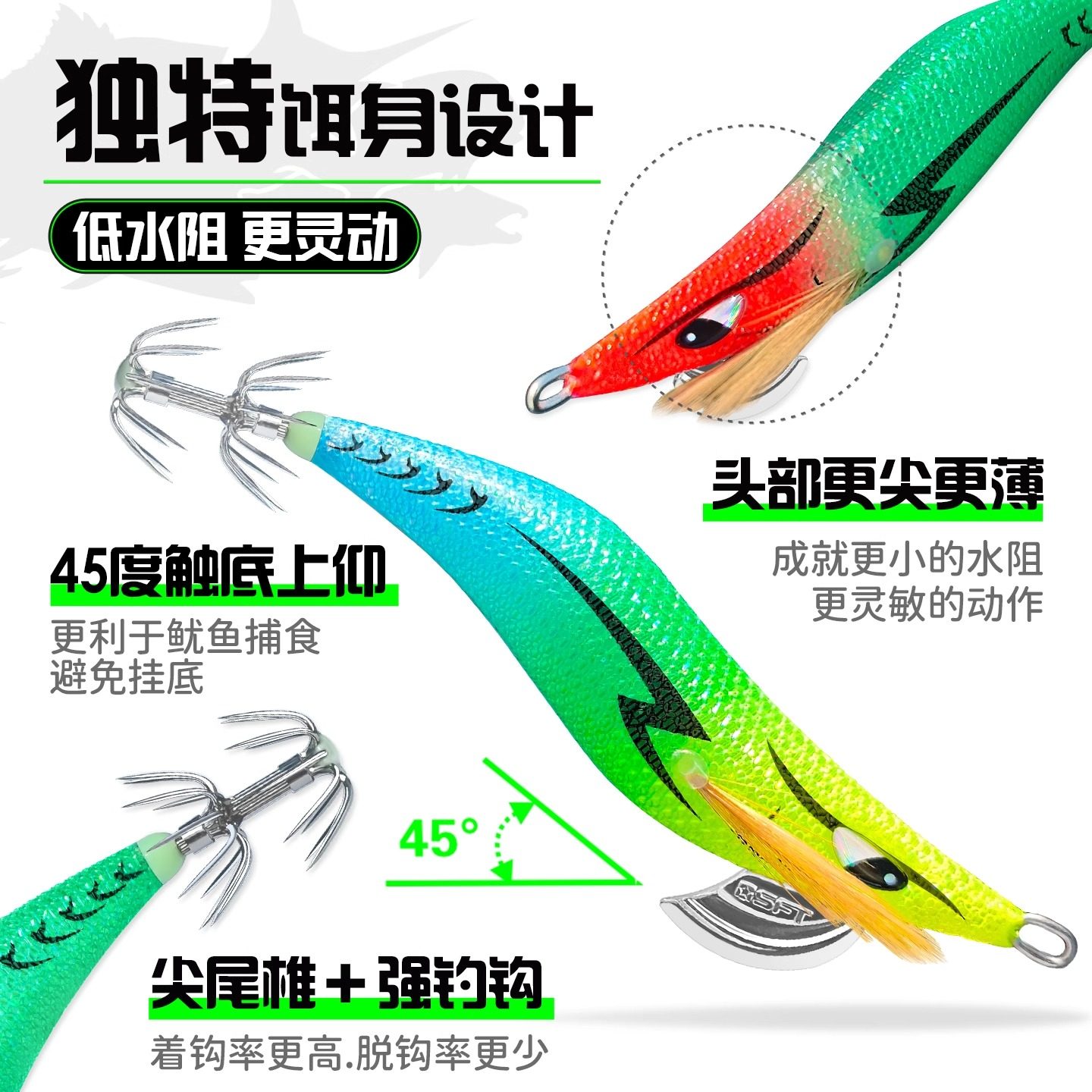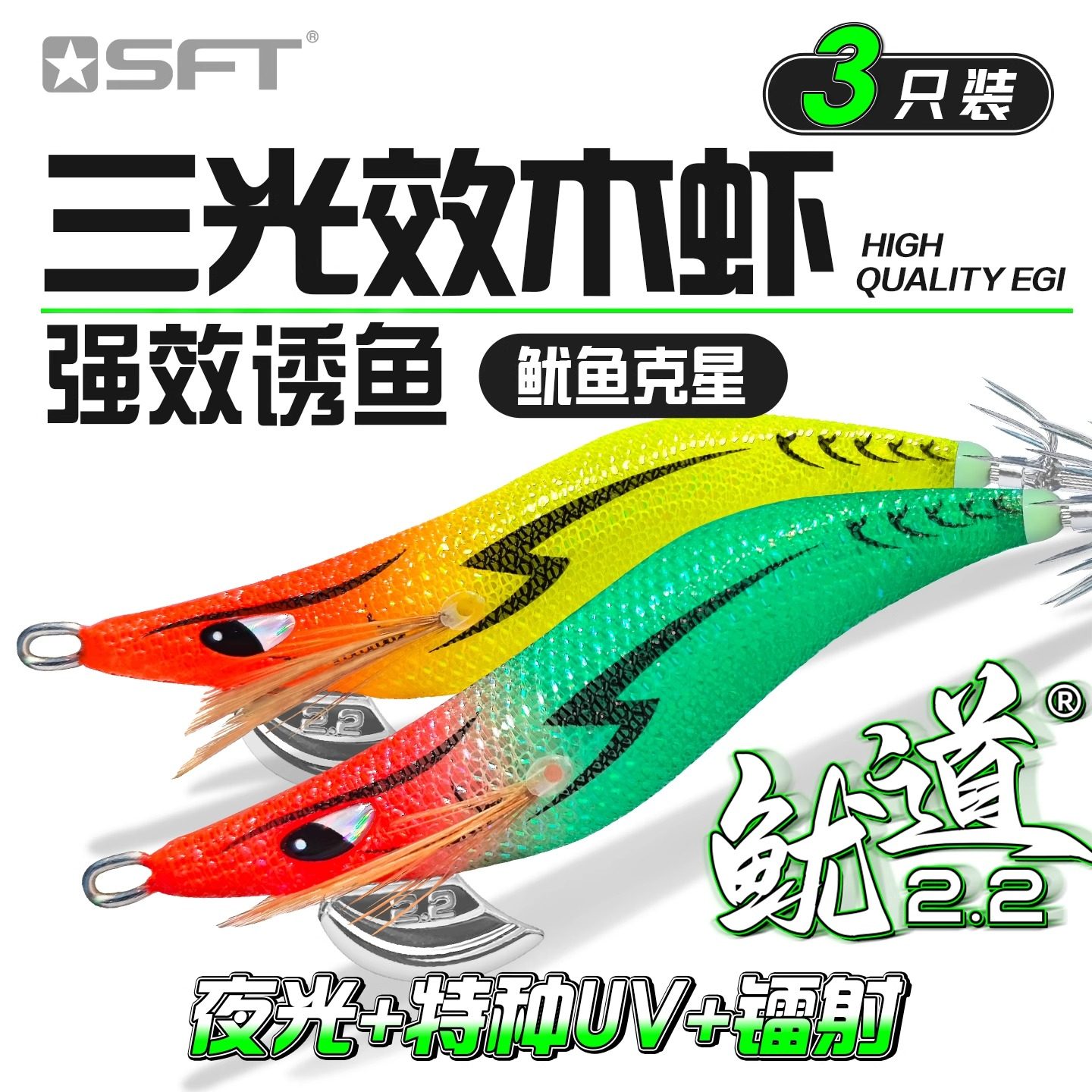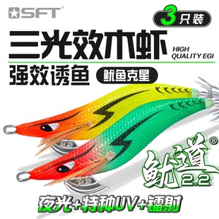 鱿鱼假饵木虾超钓鱿道UV夜光木虾鱿鱼钩海钓船钓墨鱼乌贼章3只装