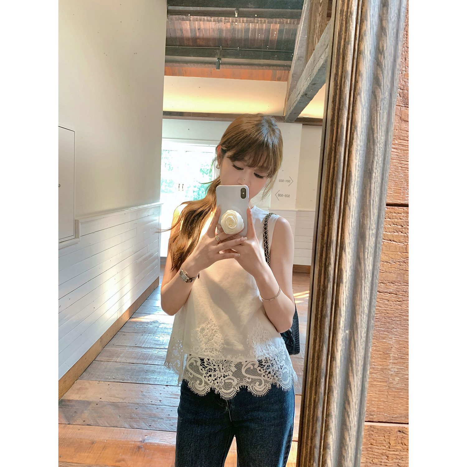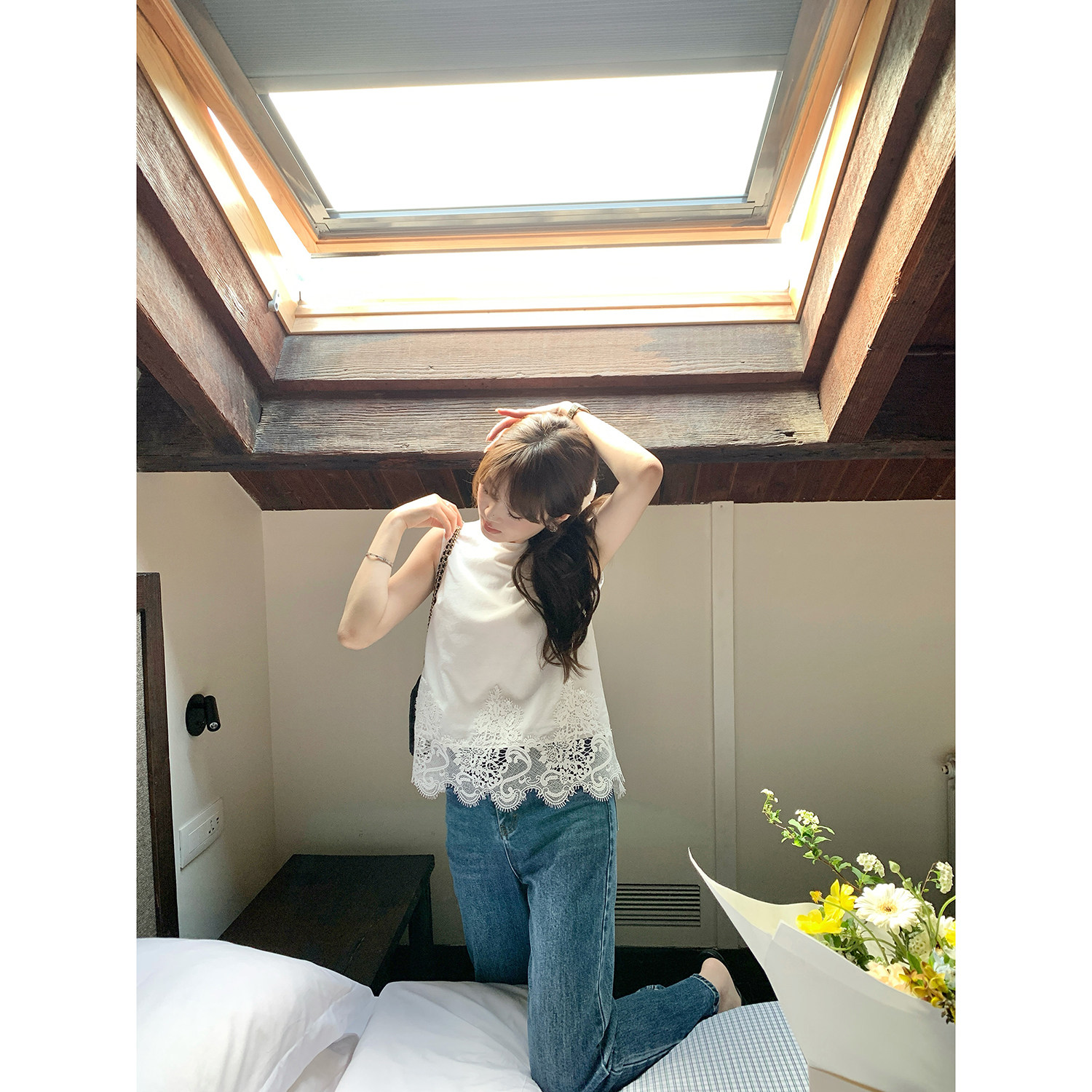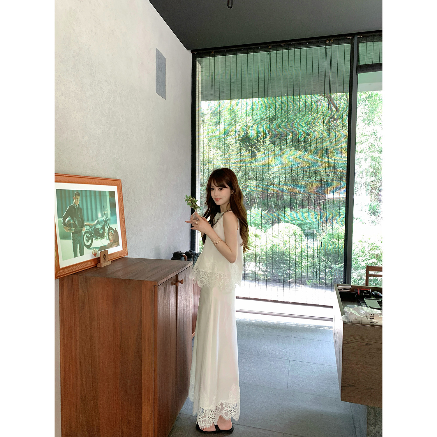 半身裙新品 套装 莱赛尔亚麻立体绣花精致蕾丝拼接无袖 AHY