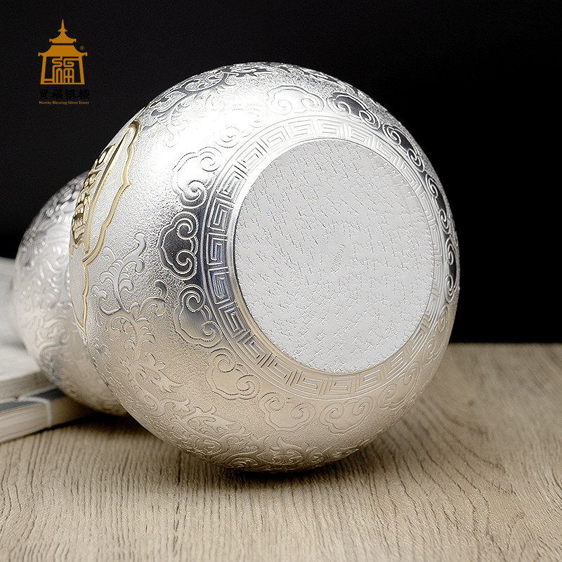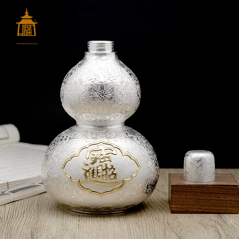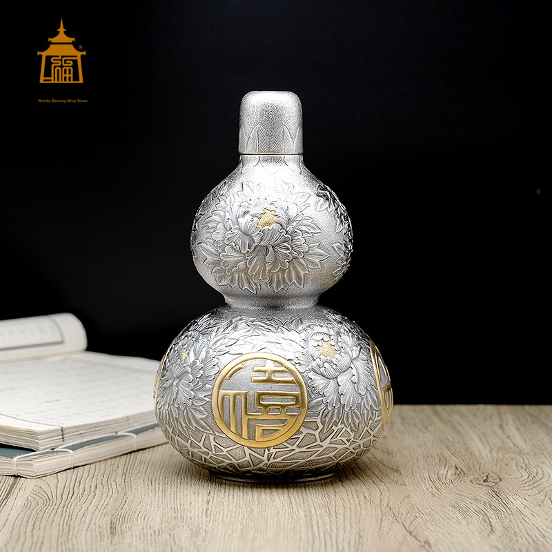 银葫芦酒壶手工银酒瓶999纯银酒具福禄寿喜银摆件白酒酒罐储水壶