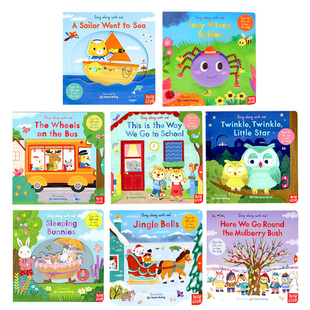 Bus with 儿歌童谣8册 欧美经典 Sing 巴士 the 英文原版 Wheels The 儿童英语启蒙操作机关纸板书 绘本 轮子上 Along