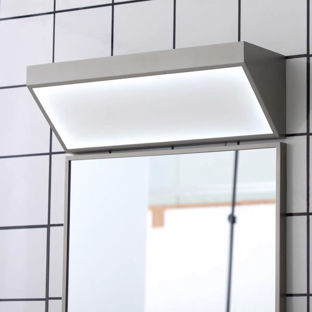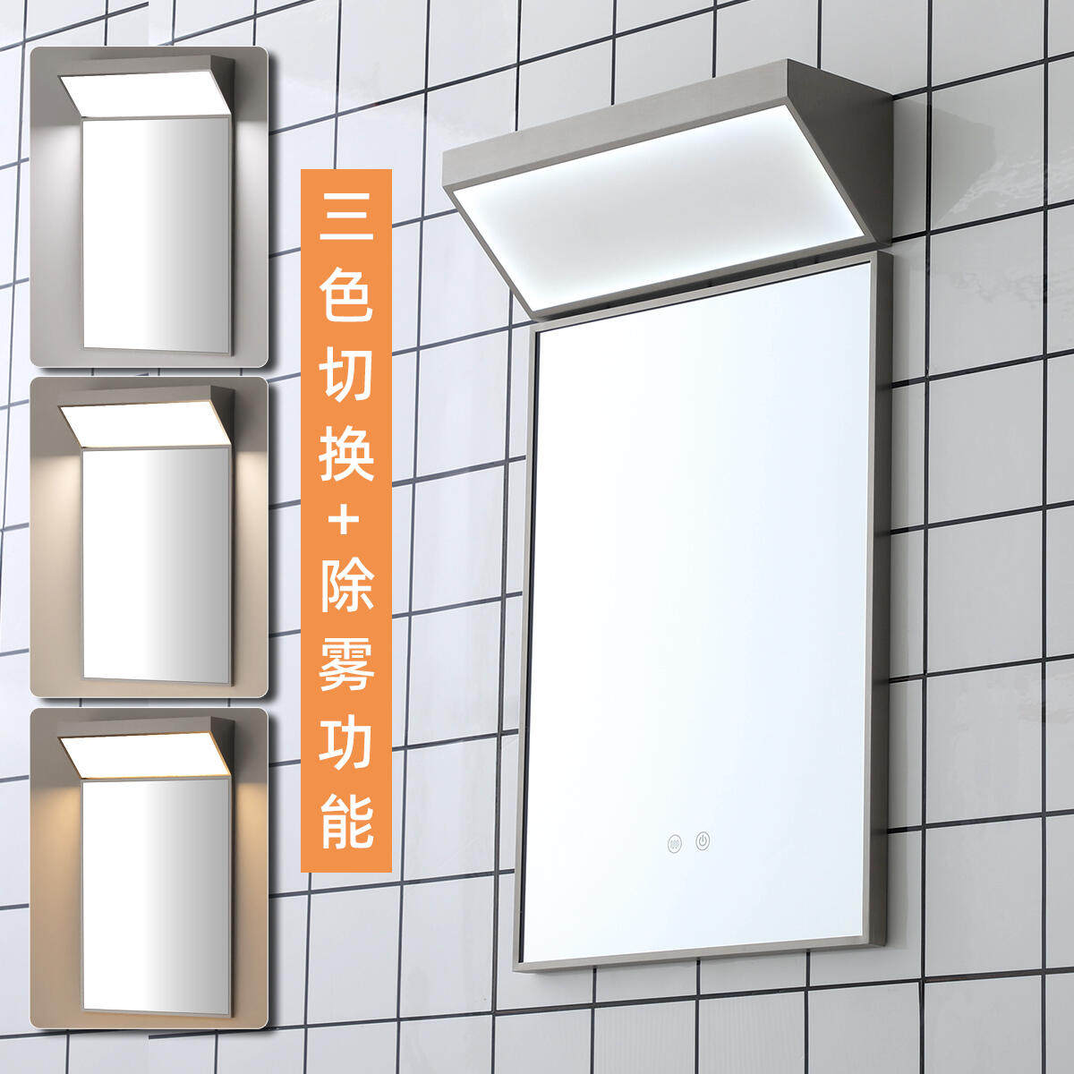 中古风简约网红现代不锈钢浴室卫生间方形镜子镜前灯触控带灯除雾