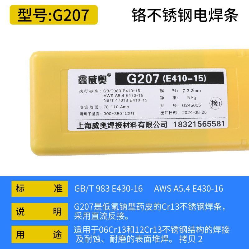 G302 E430电焊条G202 G217 G307铬氏不锈钢焊条 G207 E410NiMo