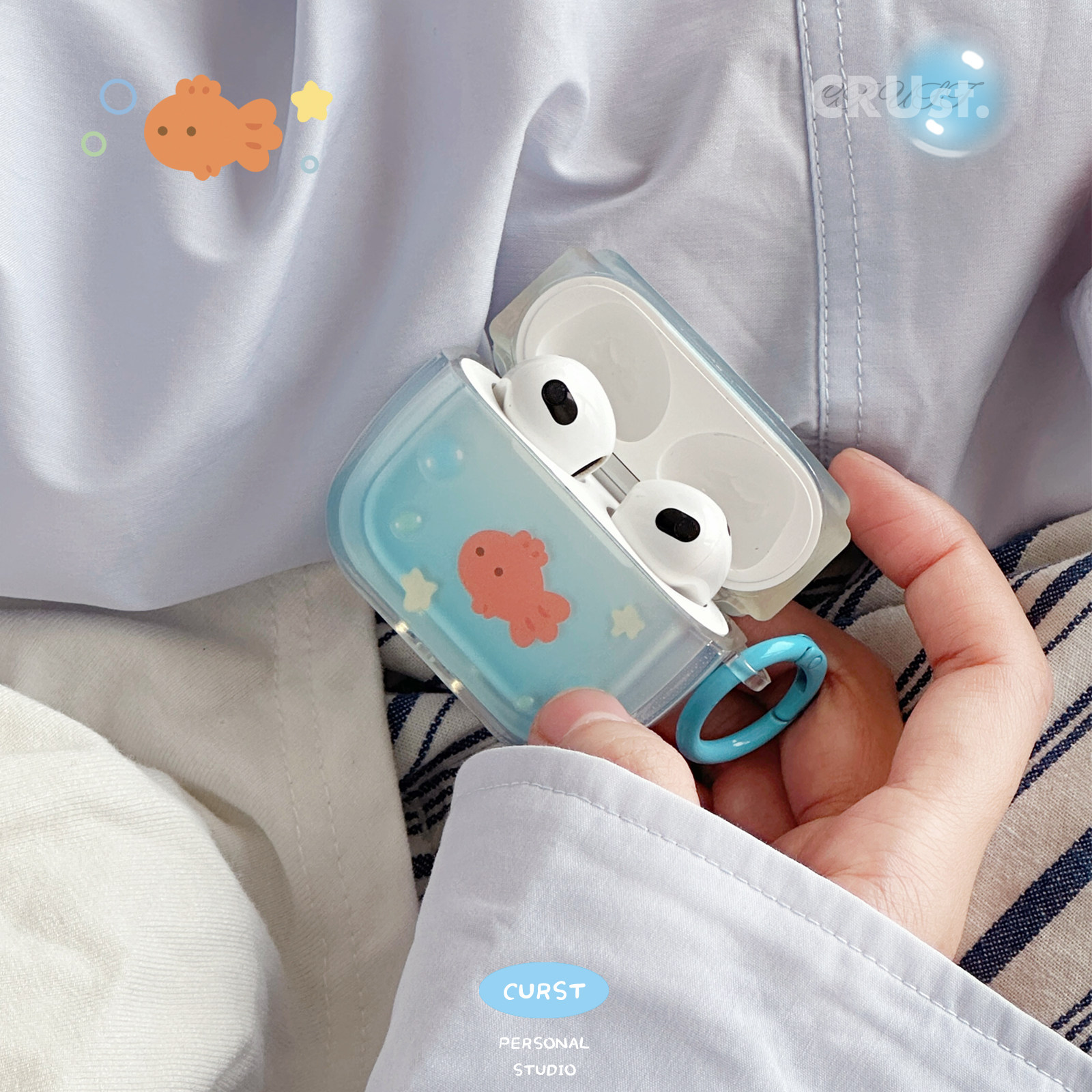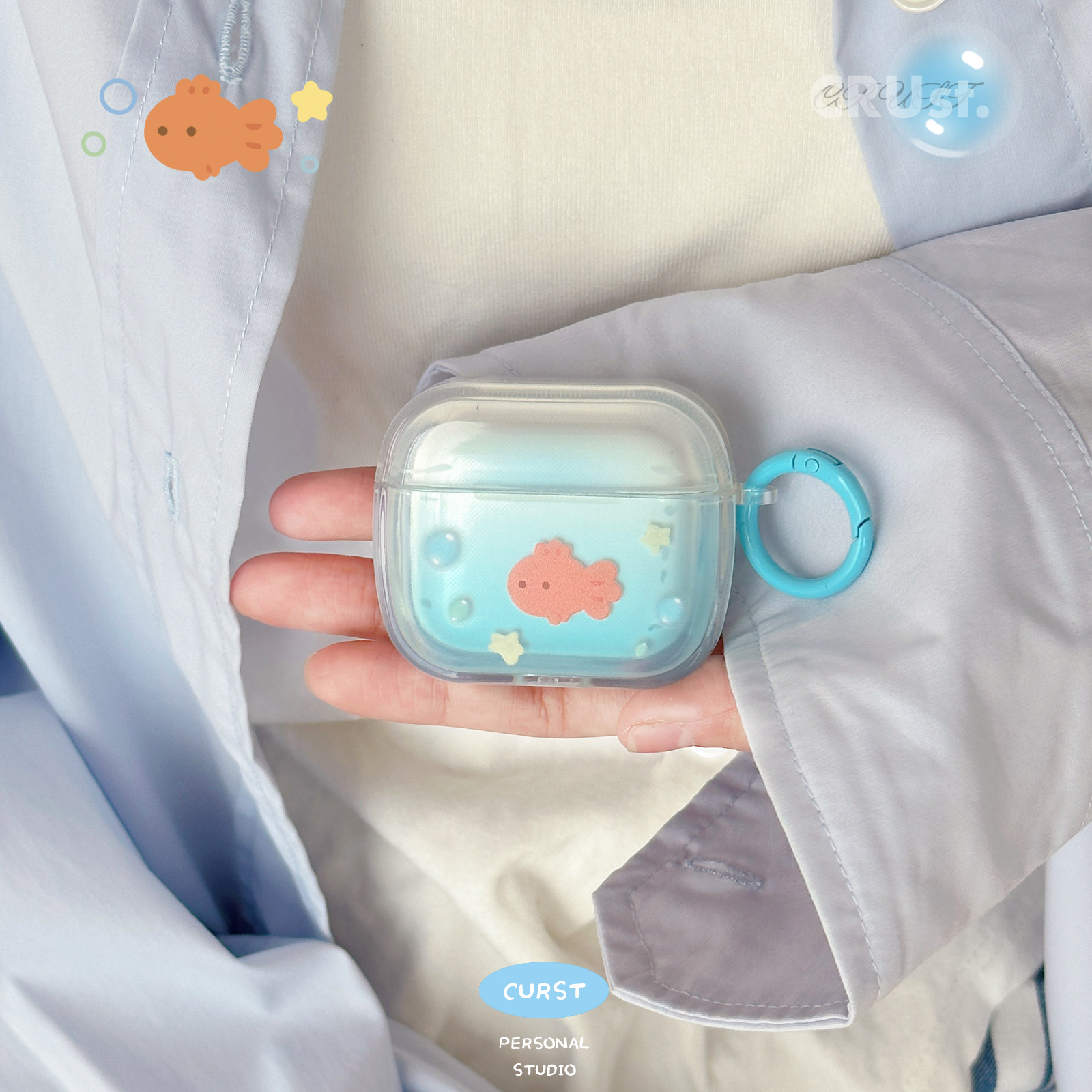 pro pro2 赠送配套挂饰 地壳说原创小鱼泡泡苹果耳机壳适用Airpods1 3渐变半透明可站立保护套软壳
