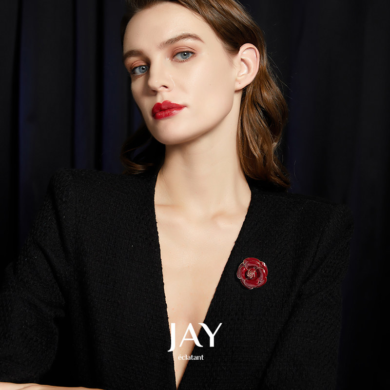 法式 饰气质饰品 复古小香风山茶花胸针胸花领花别针优雅千金风装