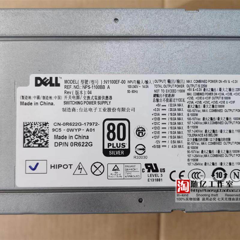 1100BB NPS N1100EF 1100W DELL R622G T7500工作站电源