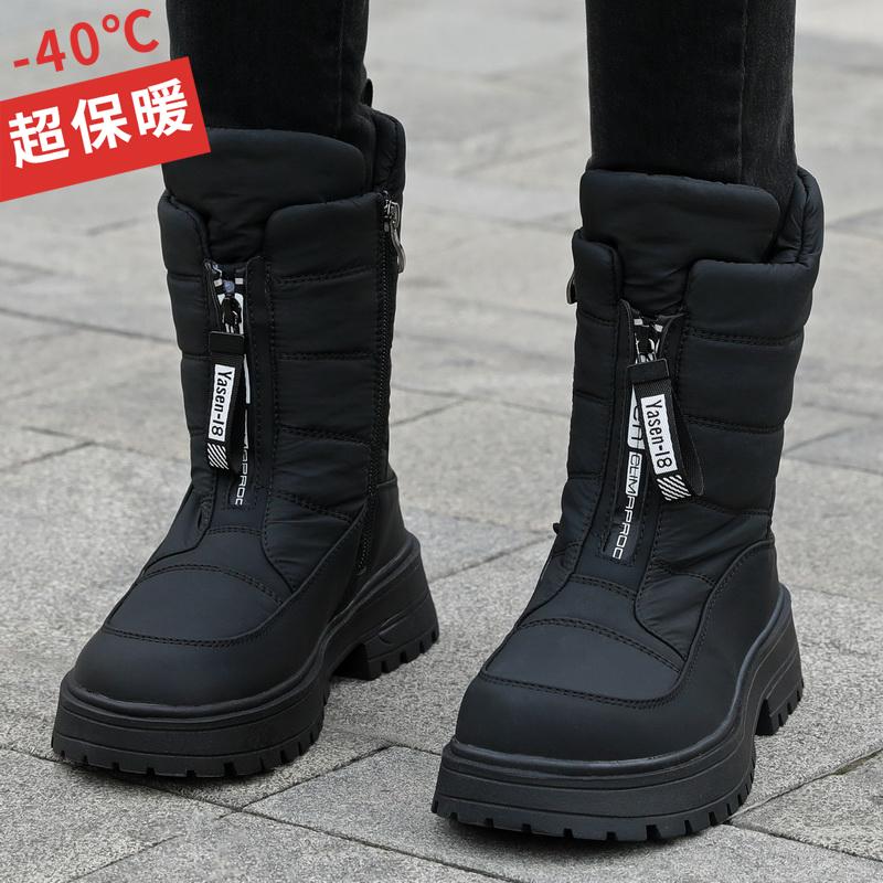 中筒靴东北户外防水防滑抗冻防寒鞋 冬季 雪地靴女加绒加厚保暖棉鞋