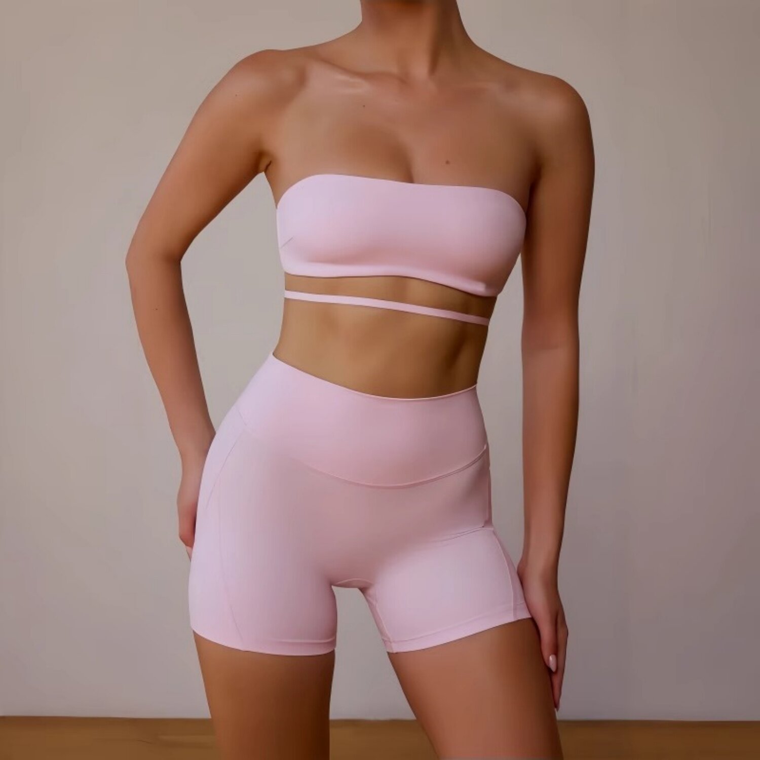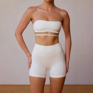 运动健身文胸女美背抹胸含胸垫裸感防走光瑜伽背心无肩带紧身裹胸
